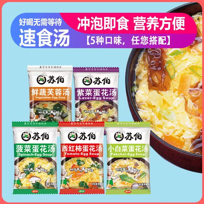 📚 苏泊速食蔬菜汤速溶汤料小白菜包西红柿番茄紫菜蛋花汤苏伯尔蛋汤