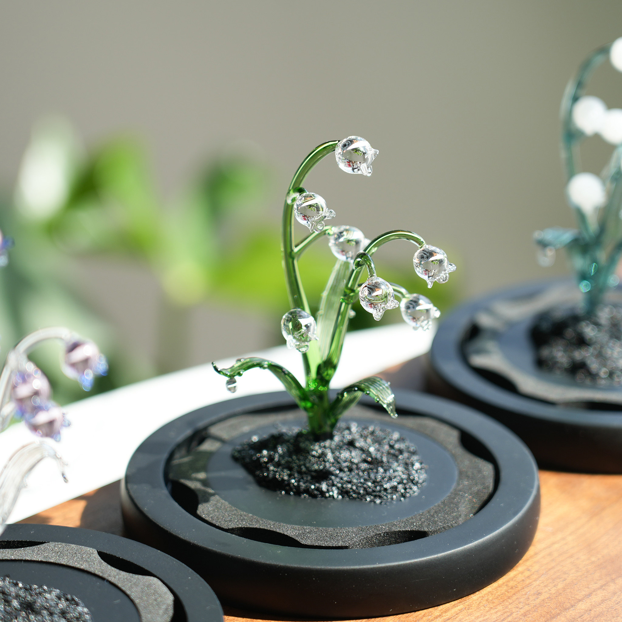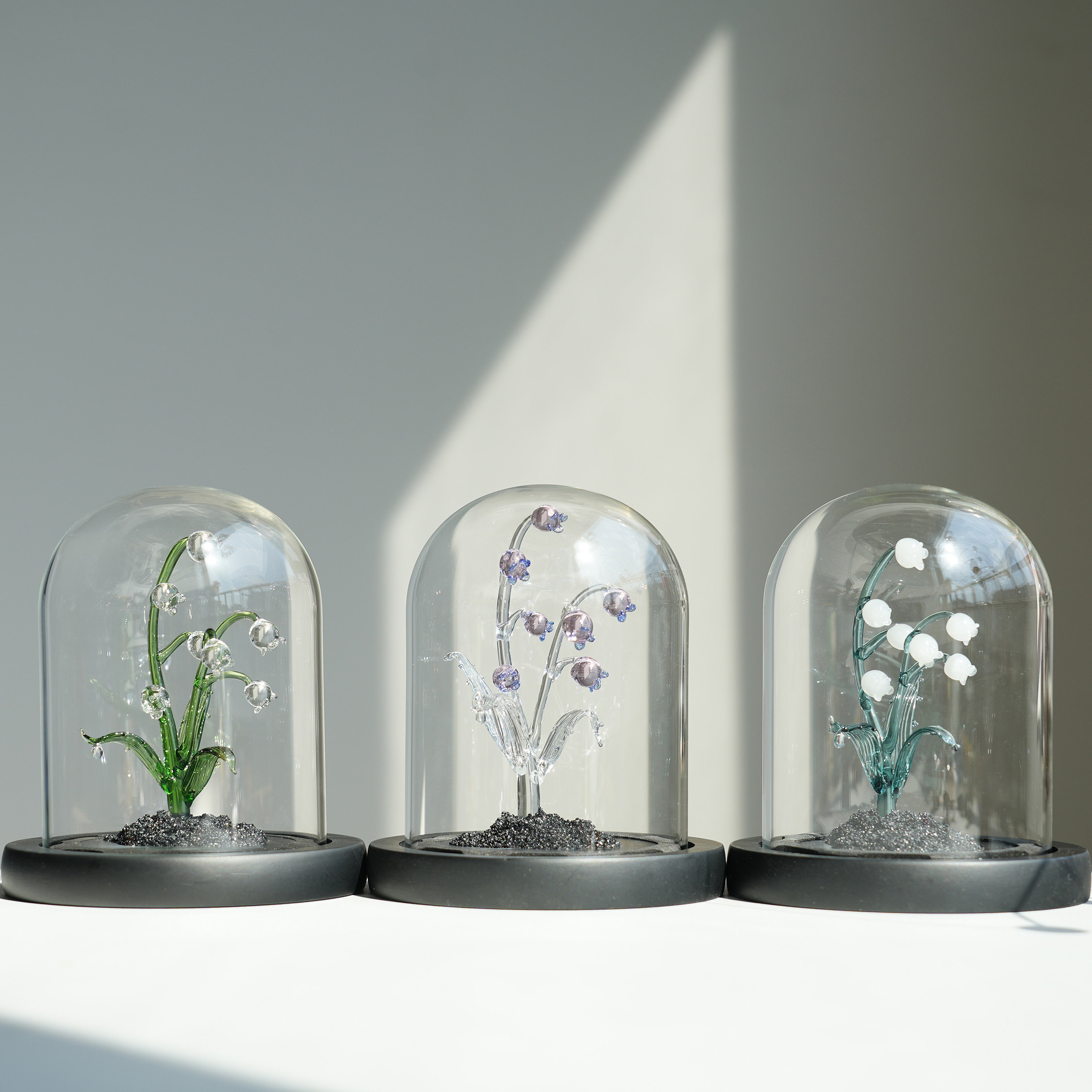 📚 淄博琉璃手作仿真铃兰花桌面摆件玻璃罩永生花治愈系创意生日礼物