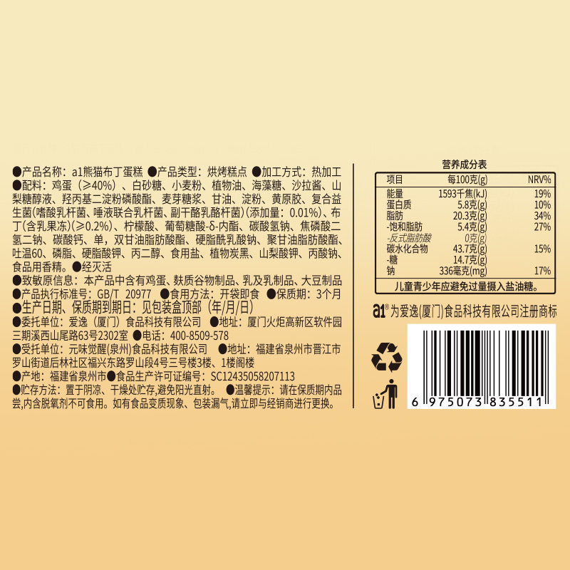 📚 A1熊猫布丁蛋糕儿童零食学生营养早餐面包下午茶点心独立小包装