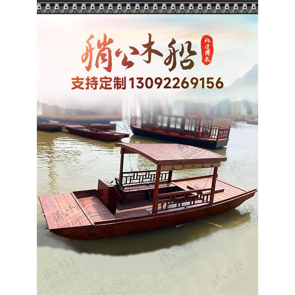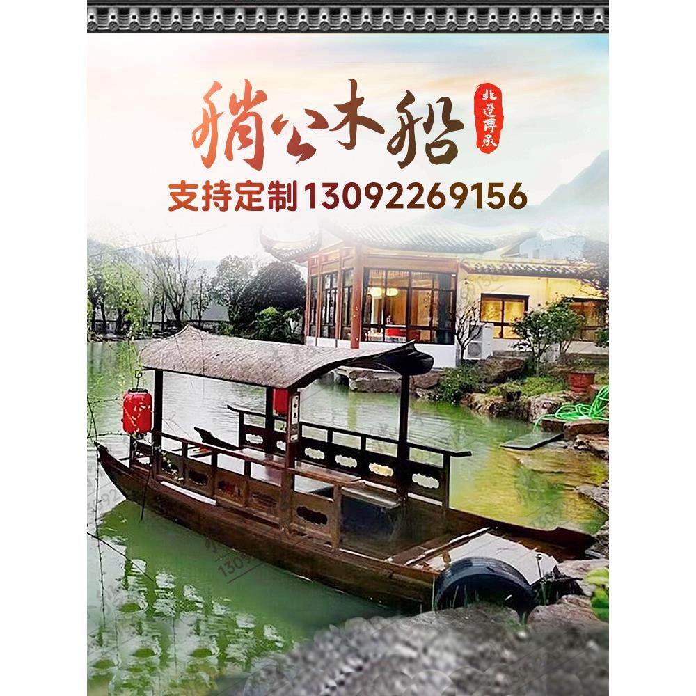 📚 仿古木船实木水上餐饮船乌篷船装饰景区观光旅游船电动室内可下水