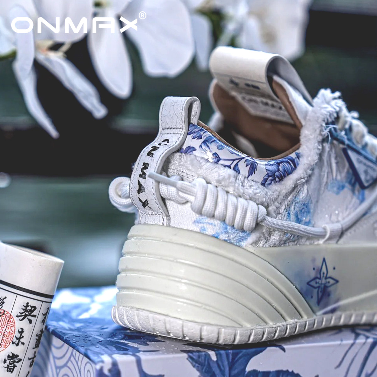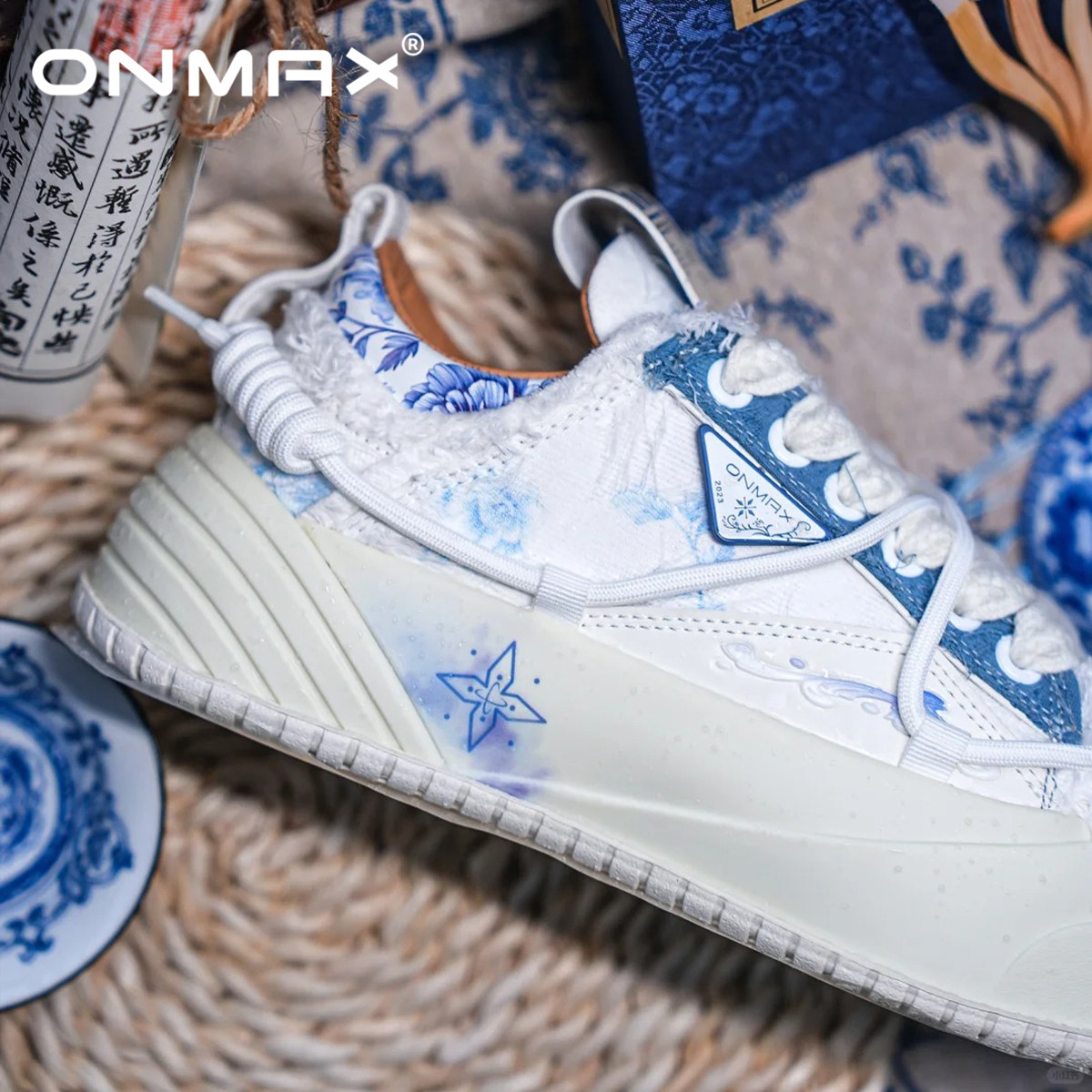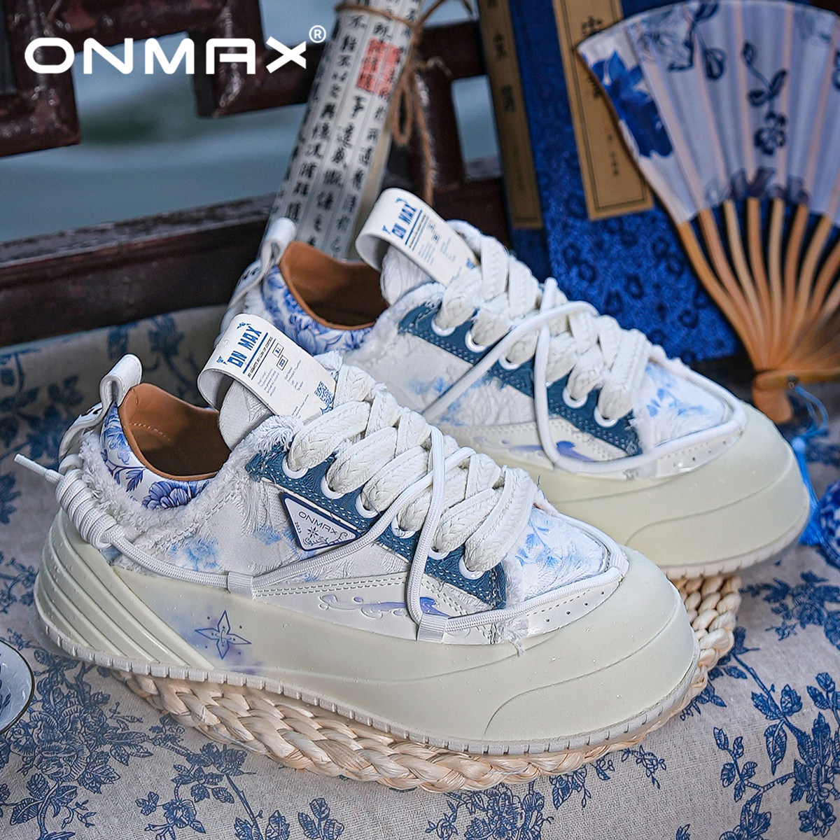 📚 【周深同款】onmax青花瓷纸飞机帆布鞋国潮厚底增高男女2025年夏
