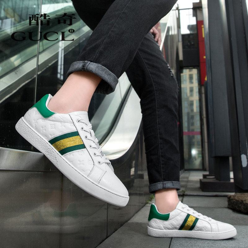 📚 酷奇男鞋欧洲站新款真皮内增高潮流百搭板鞋男透气运动休闲小白鞋