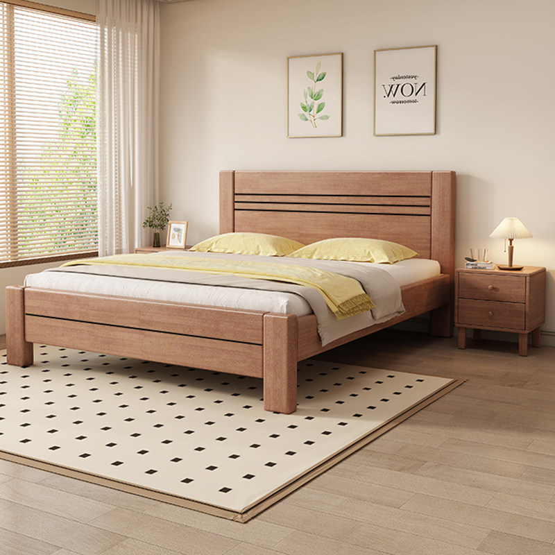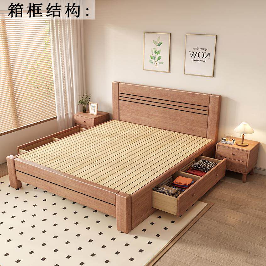 📚 实迪胡桃木实木床现代简约北欧小户型主卧次卧高箱储物单人双人床