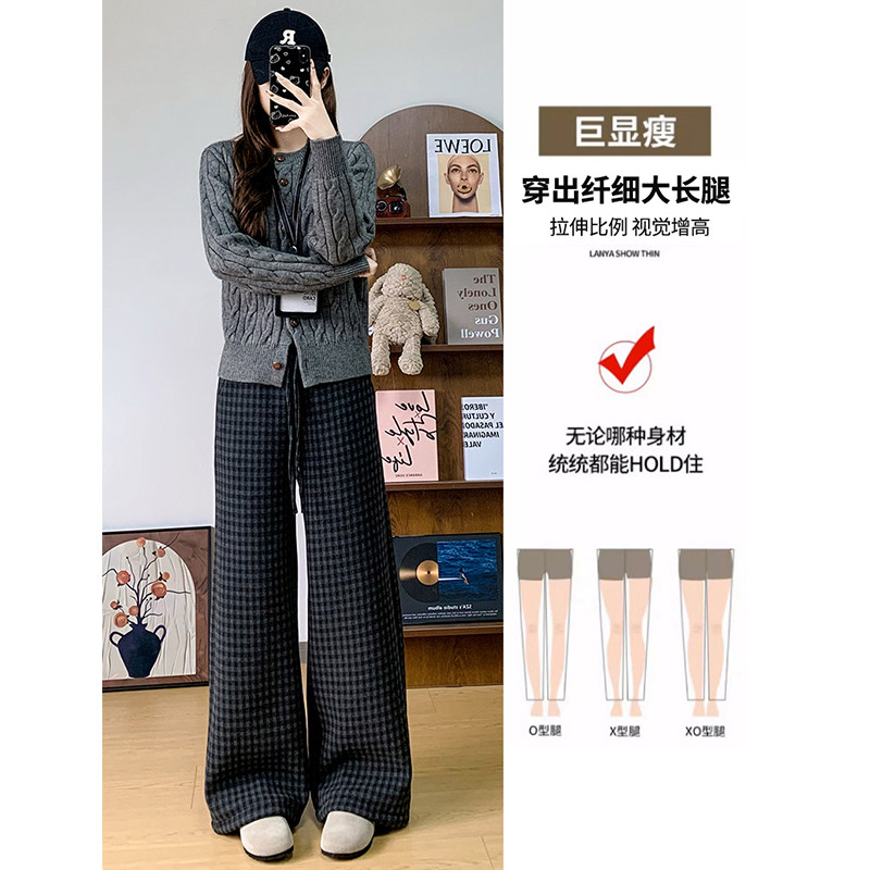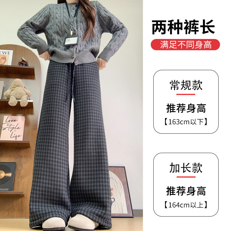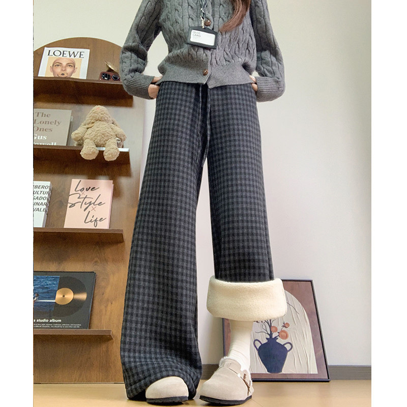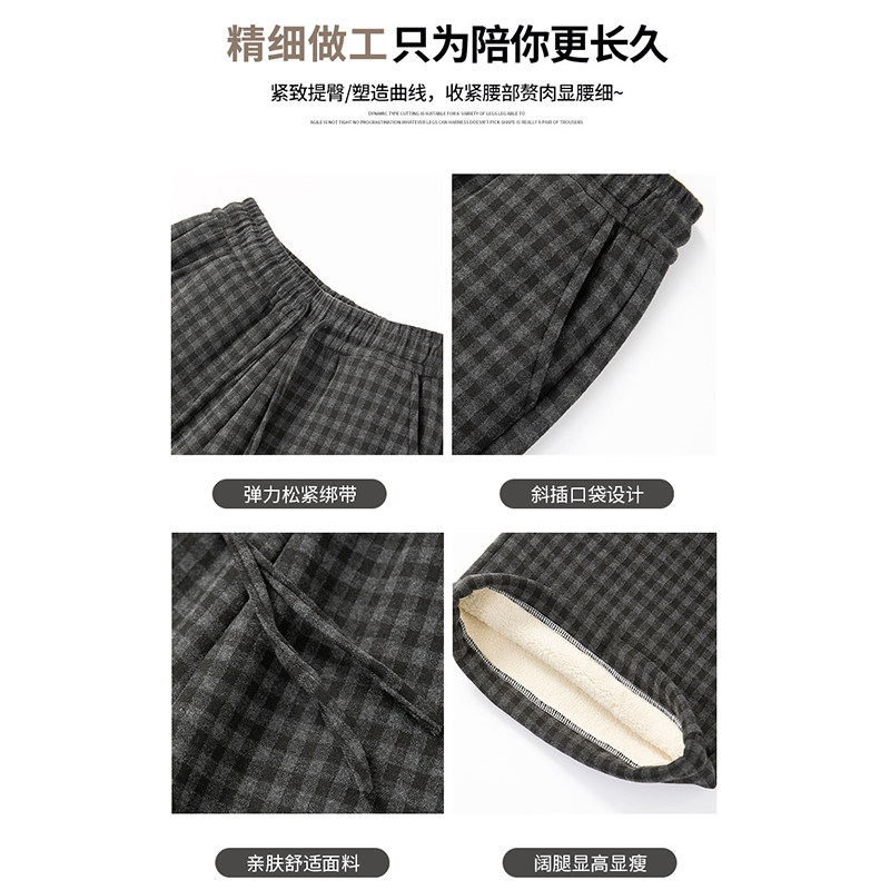 📚 羊羔绒格子阔腿裤女秋冬季加绒加厚2025新款外穿棉裤复古毛呢裤子