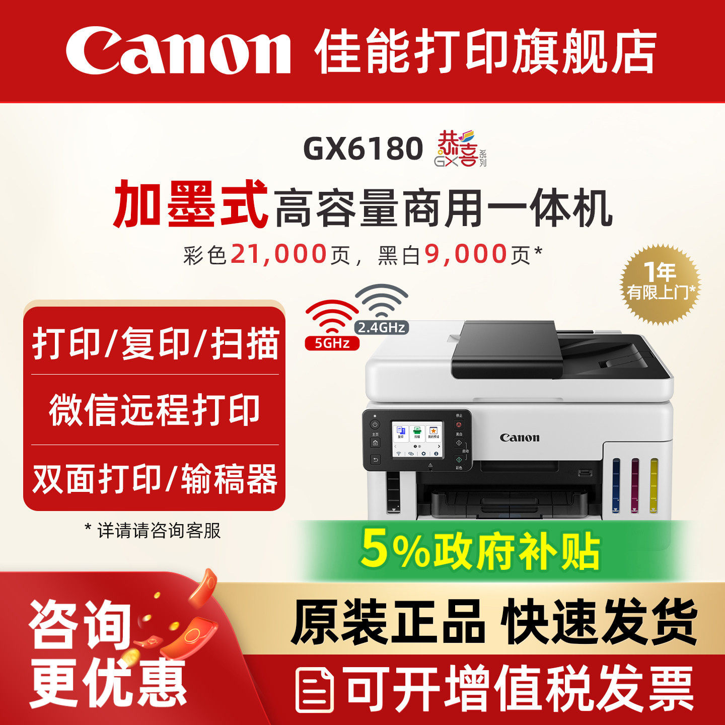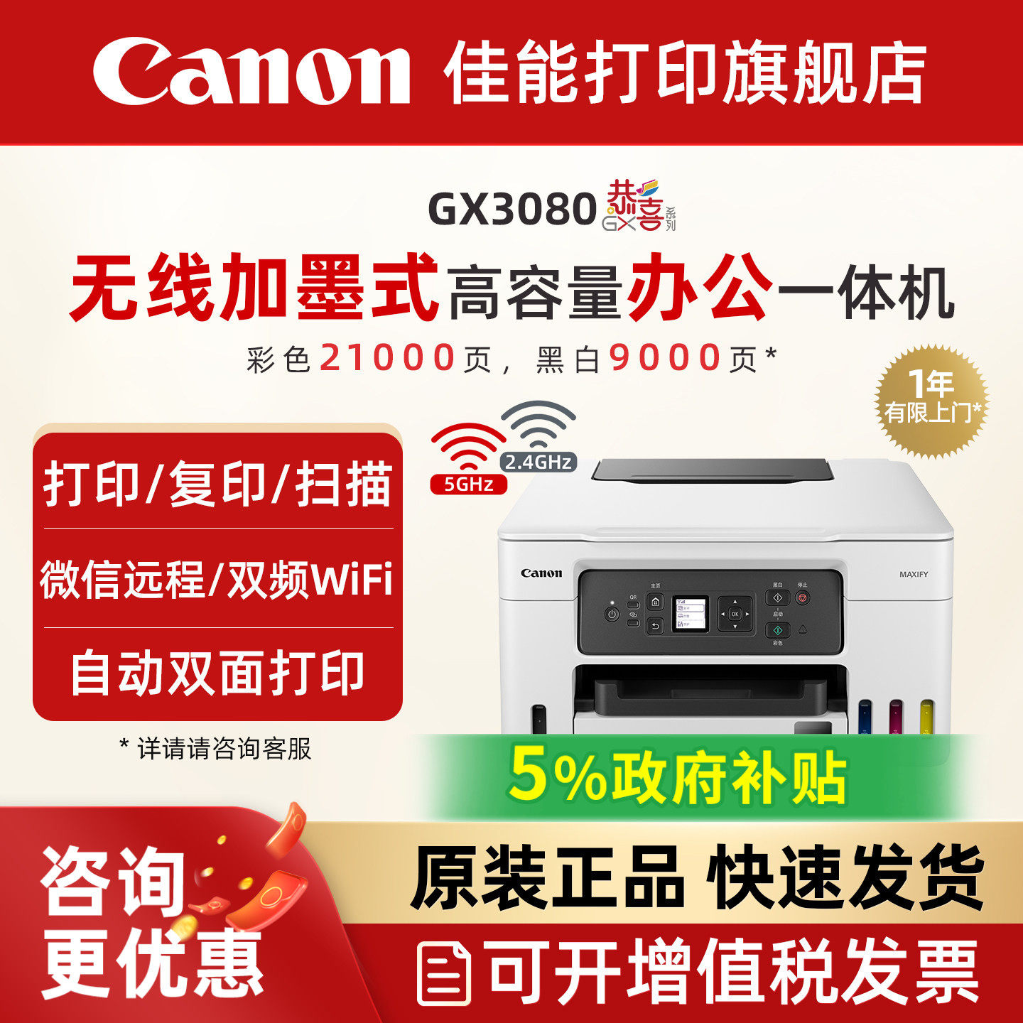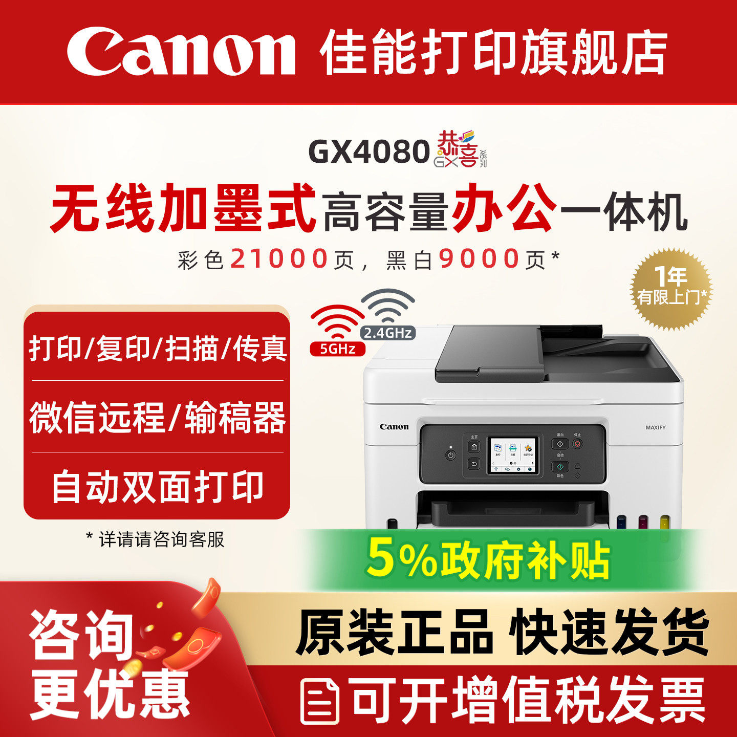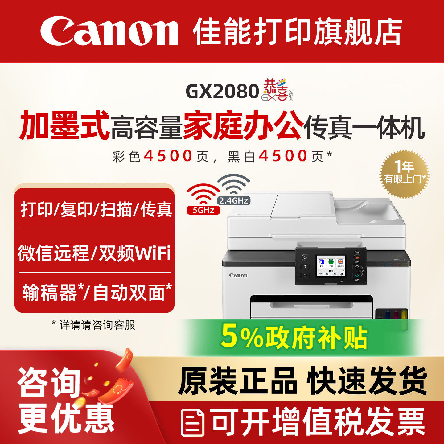 📚 佳能旗舰店GX1080/GX2080/GX3080/4080/6180/7180原装加墨打印机彩色A4喷墨复印扫描一体机微信双面输稿器