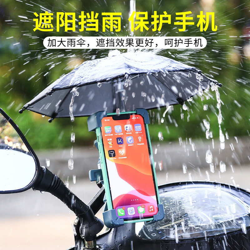 📚 外卖电动车手机机导航支架带小雨伞单车山地摩托电瓶自行车载骑行