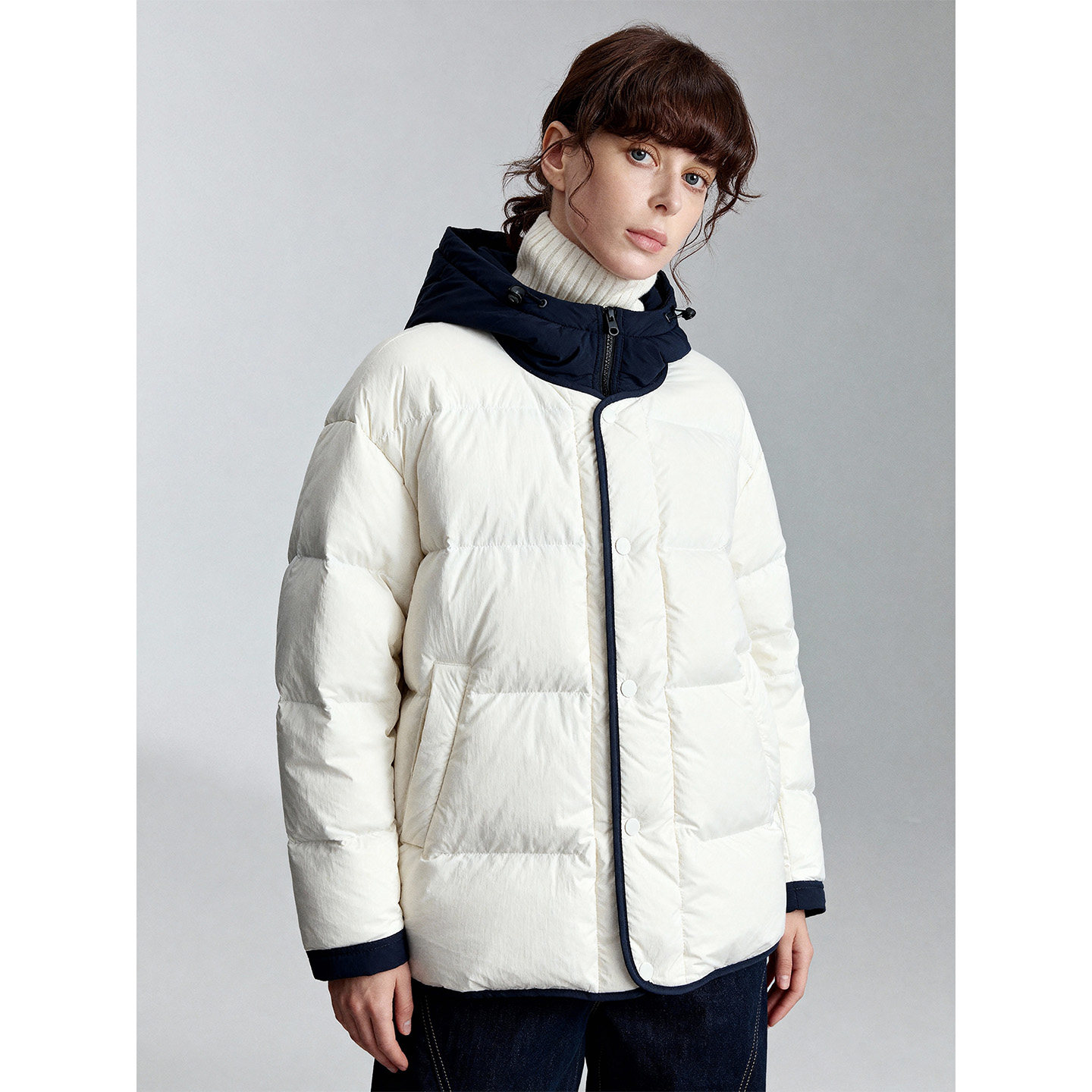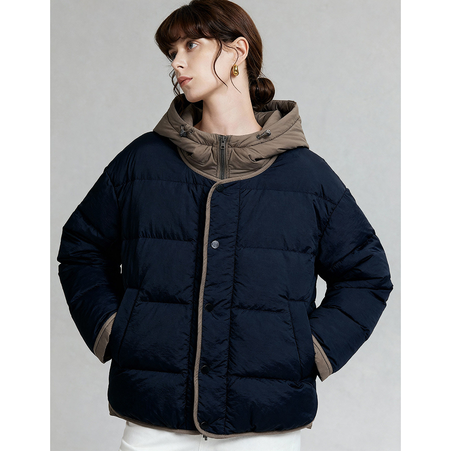📚 百家好豆绿色连帽拼接羽绒服女冬季新款保暖好看短款宽松加厚外套