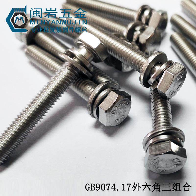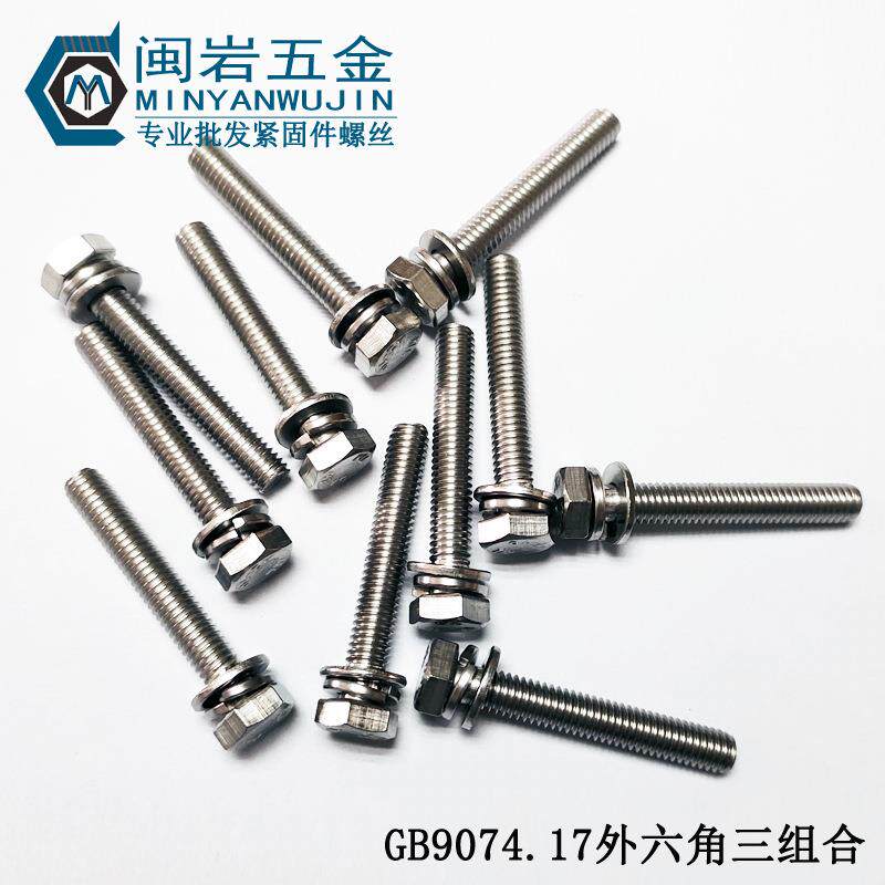 📚 不锈钢304切边外六角三组合机丝M10*16-120GB9074.17组合螺丝