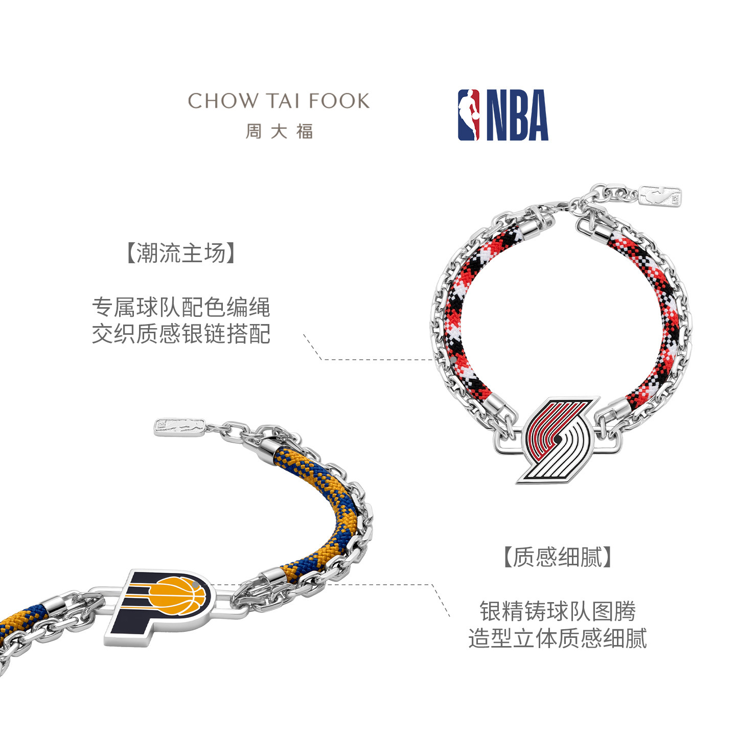 📚 周大福NBA联名开拓者步行者凯尔特人985银编织手链男款礼物