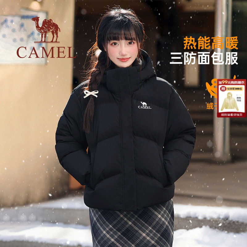 🔥骆驼羽绒服女装2025秋冬爆款!连帽短款面包服,黑色加厚保暖,券后价689元!💫