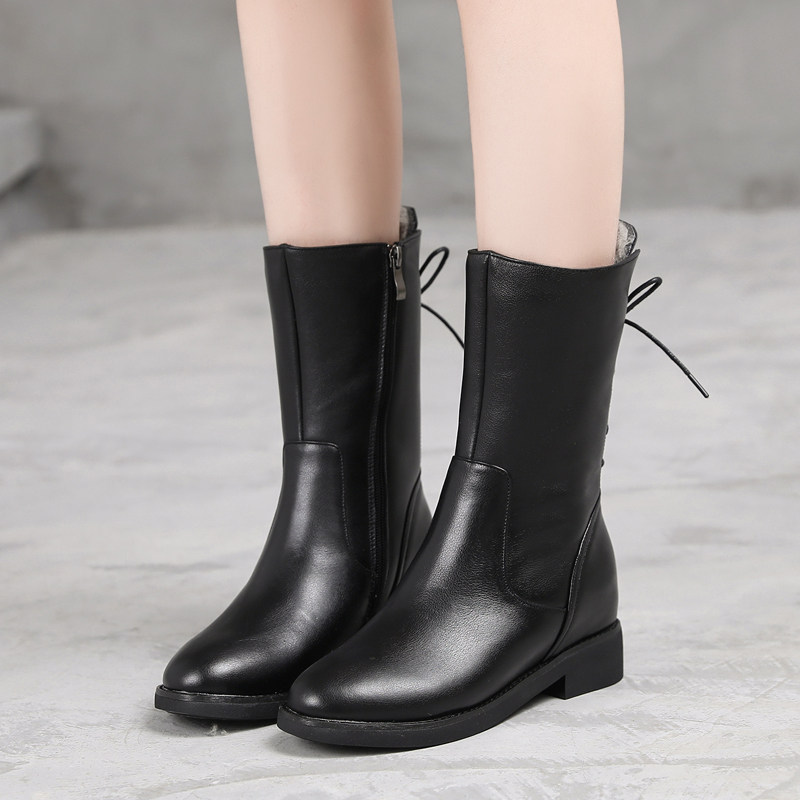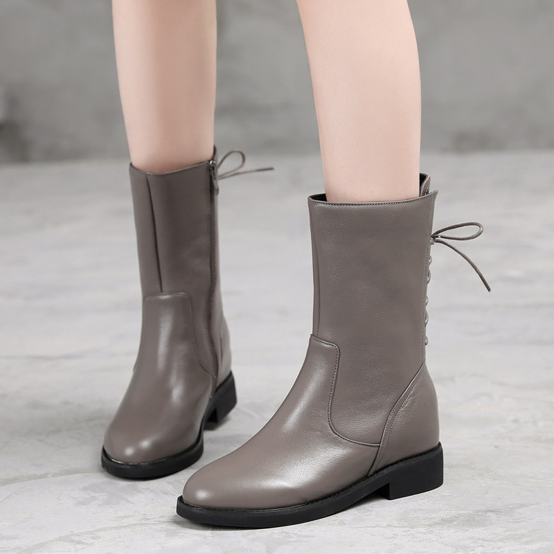 📚 全牛皮靴子女中筒靴2025新款秋冬季真皮马丁靴加绒皮靴内增高女靴