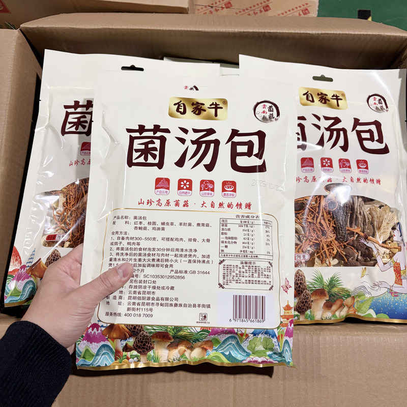 📚 自家牛菌汤包76g*20包整箱批发干货火锅配料冒菜串串打边炉羊肚菌