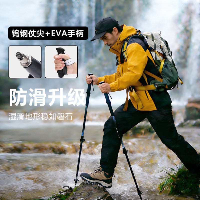 📚 户外专业登山杖手杖铝合金碳素轻便伸缩折叠爬山拐棍男女2026新款