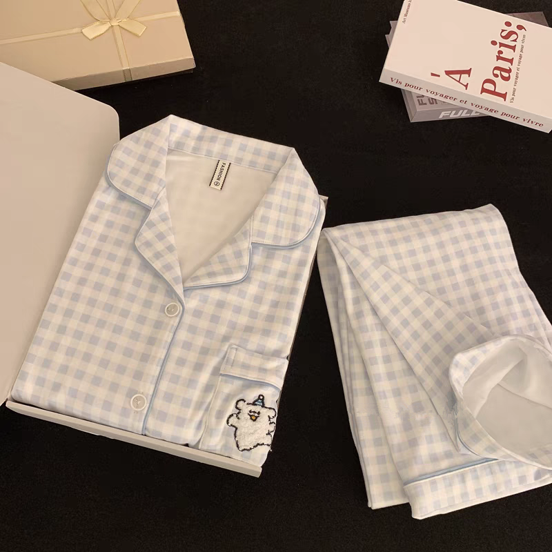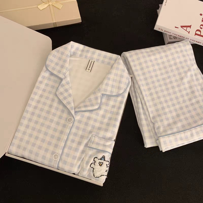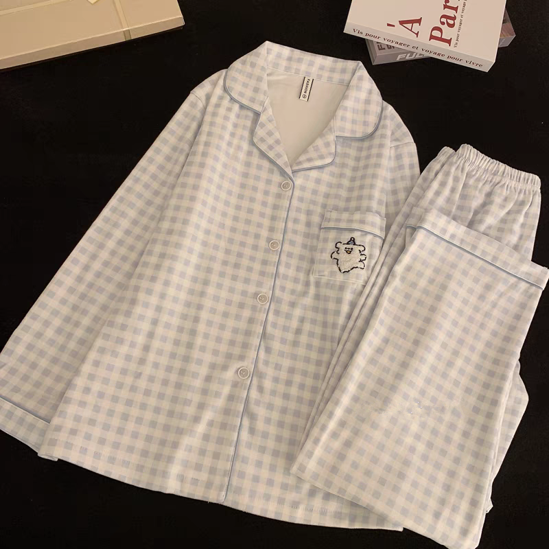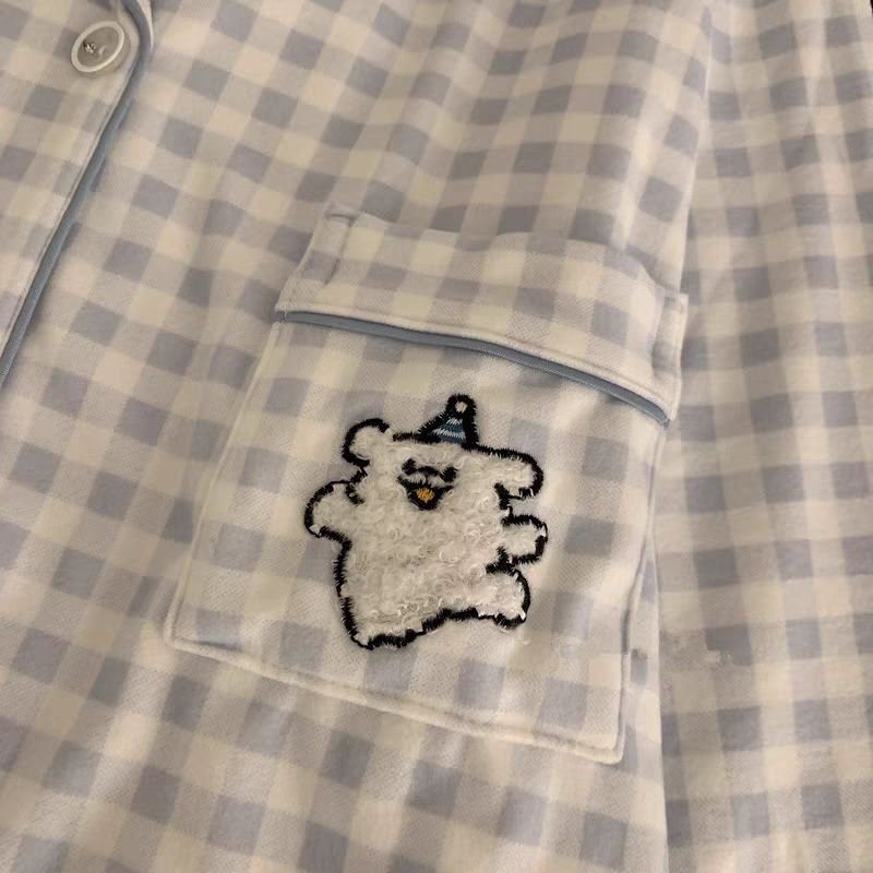 📚 ins格子小狗双面磨毛德绒睡衣女秋冬保暖宽松学生家居服开衫套装