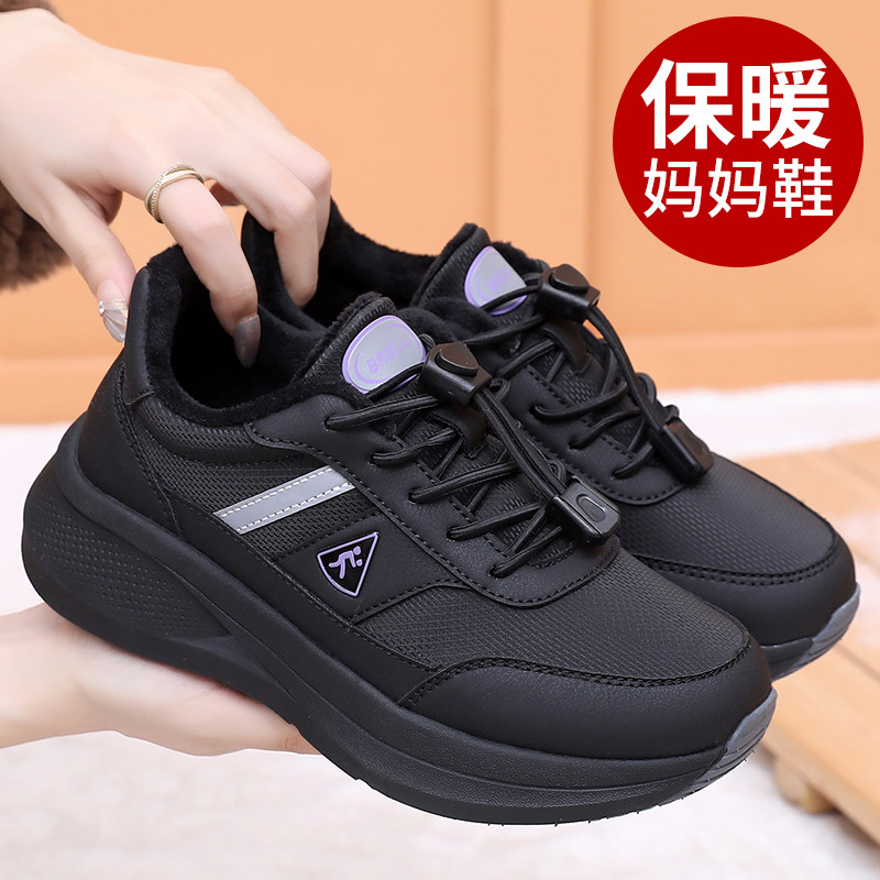📚 老北京布鞋女加绒运动鞋黑色鞋子轻便厚底增高鞋保暖防滑妈妈棉鞋