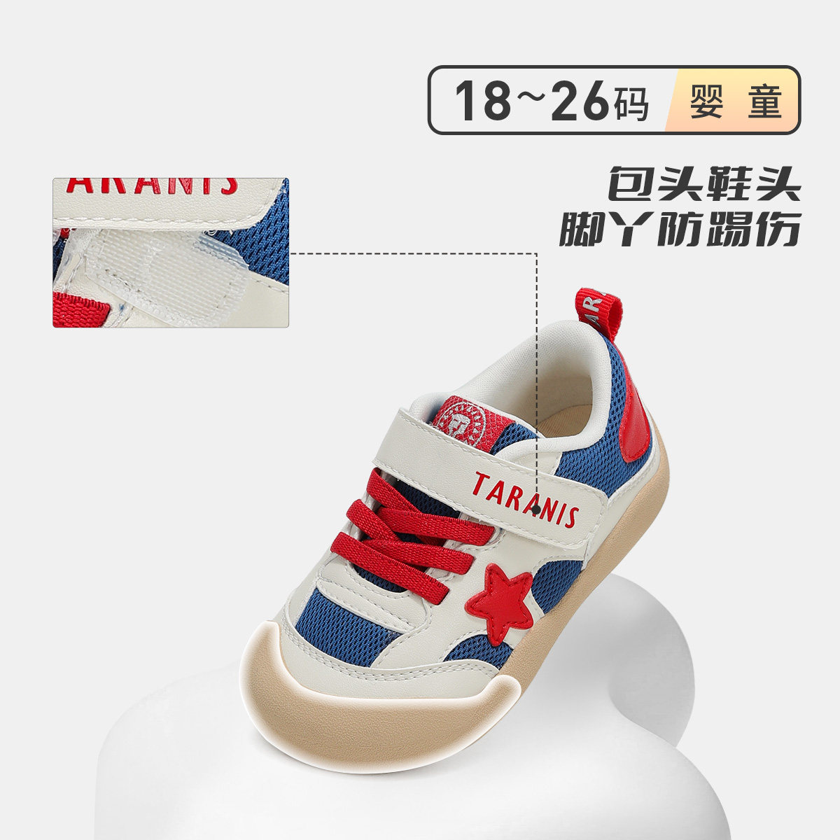📚 【自营】TARANIS/泰兰尼斯春季新款儿童包头运动男女宝透气学步鞋