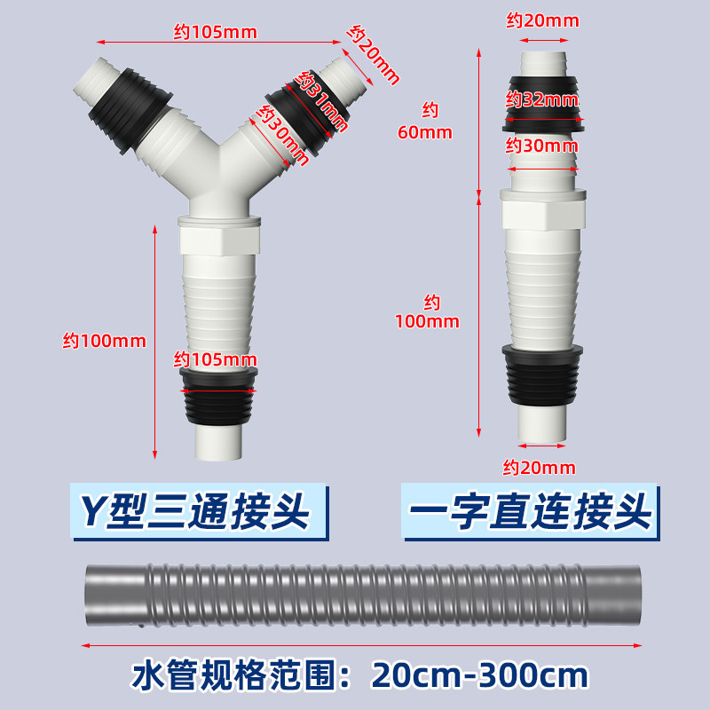 📚 下水管三头通洗衣机排水管二合一下水三通接头下水道y型分水器阀
