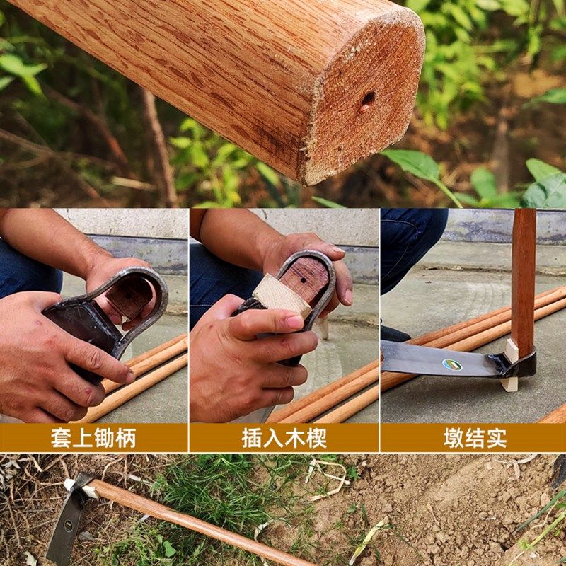 📚 青冈木锄头手柄老式锄专用半圆蹄形工具柄农具Q把硬实木棍D形木把