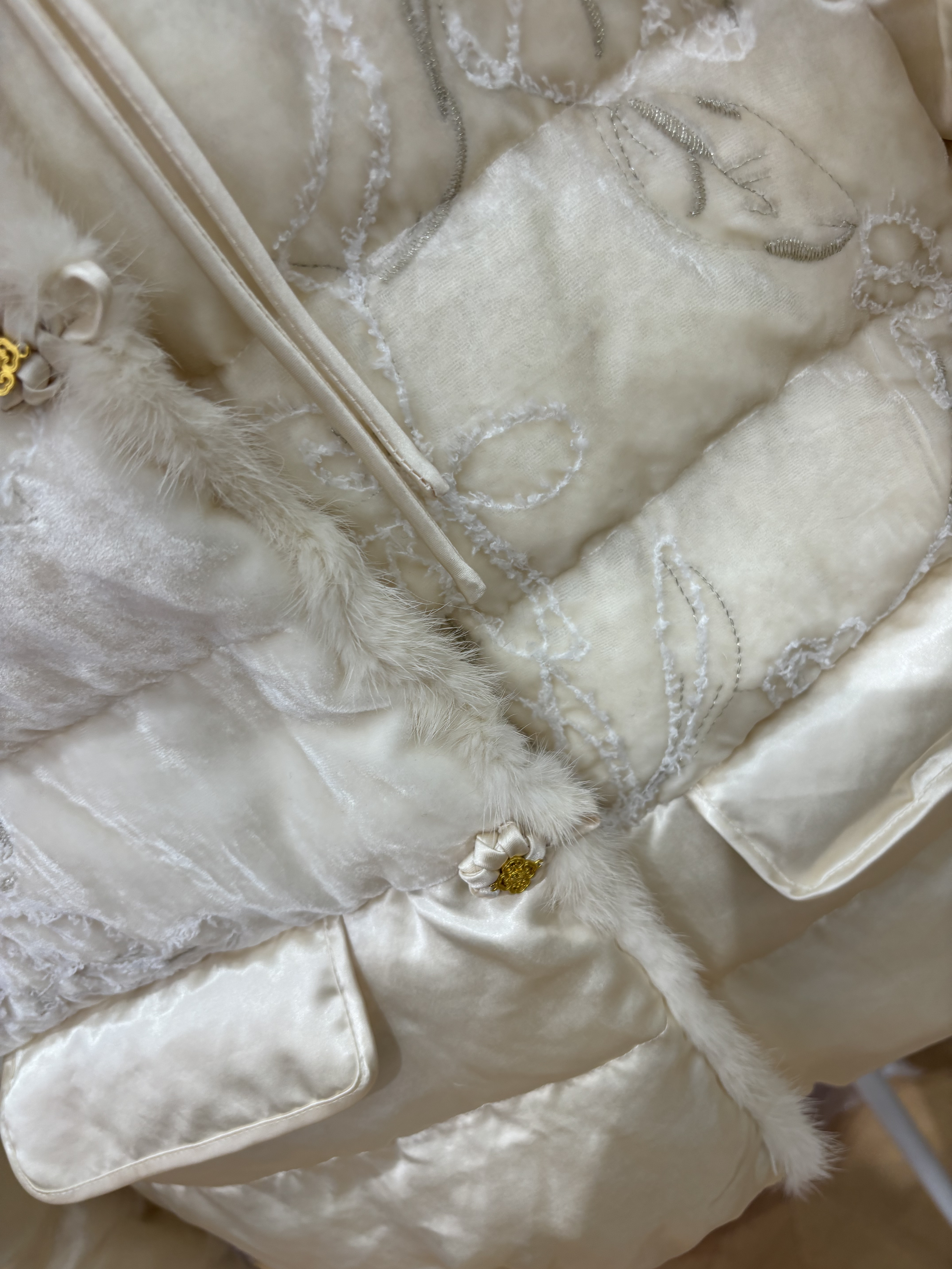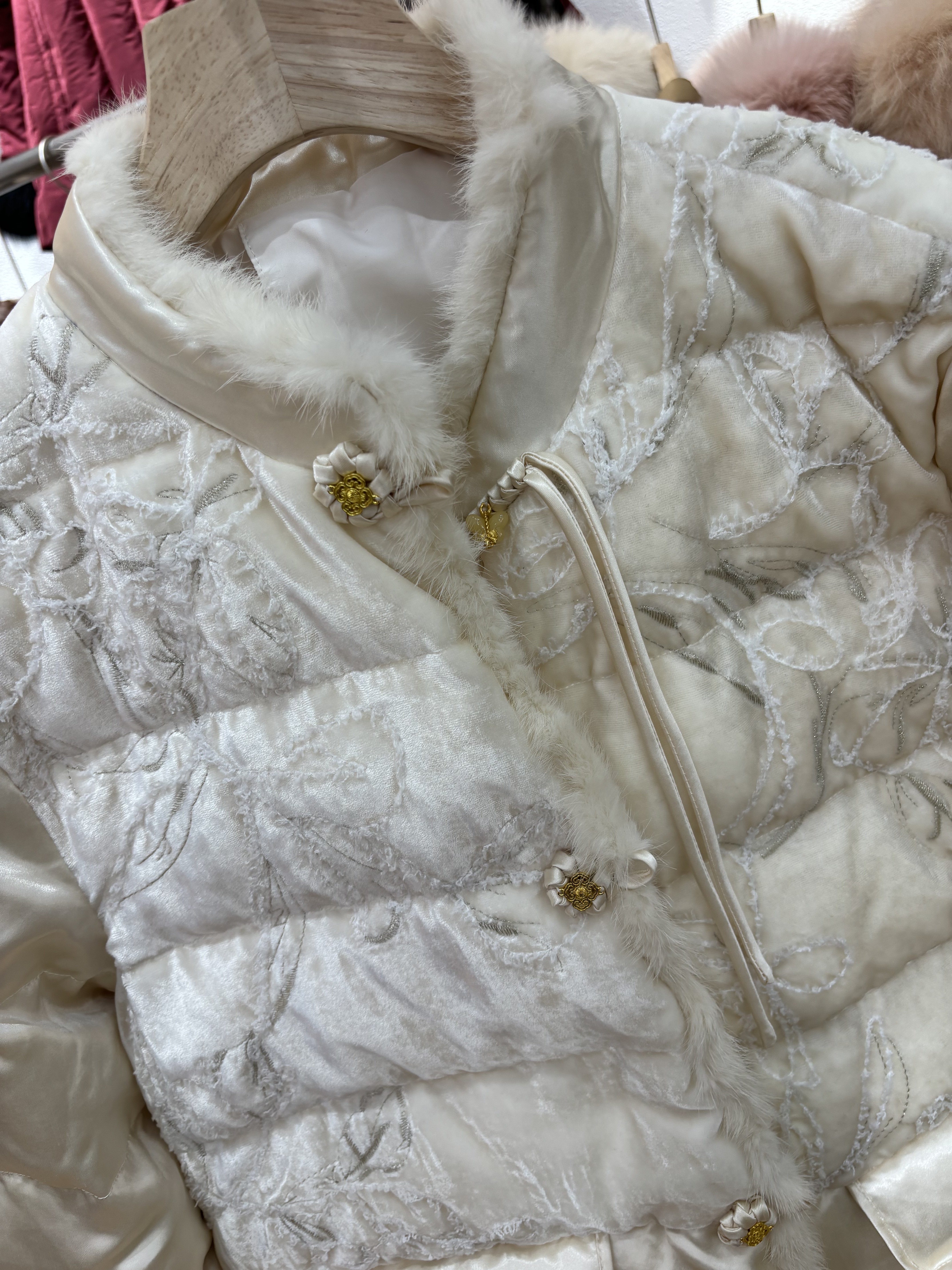 📚 欧货2026冬季新款中式国风盘扣真丝绒羽绒服女水貂毛花边鹅绒外套