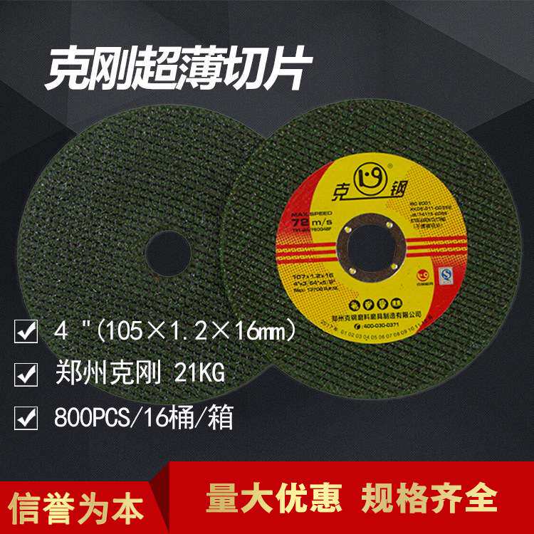 📚 郑州克钢牌不锈钢超薄金属切割片 绿色桶装切割片 105*1.2*16mm