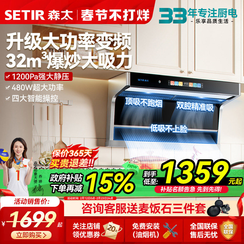 📚 森太B881吸抽油烟机家用厨房大吸力新款顶侧双吸套装以旧换新补贴