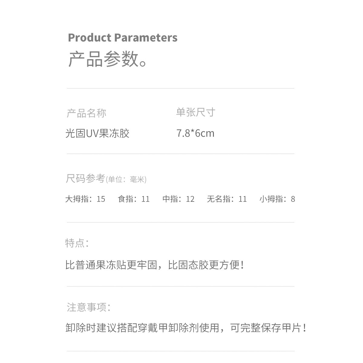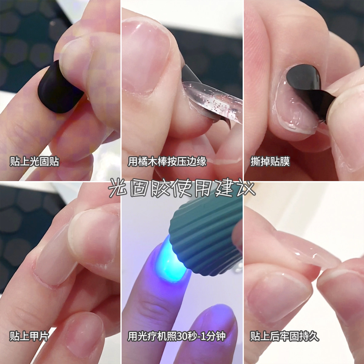 📚 美甲UV光固果冻贴固态胶贴片需照灯牢固持久不掉穿戴甲片双面贴