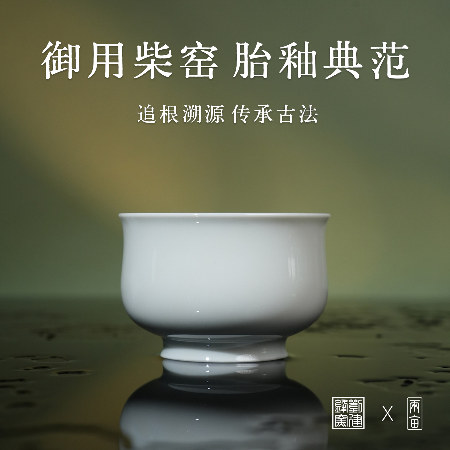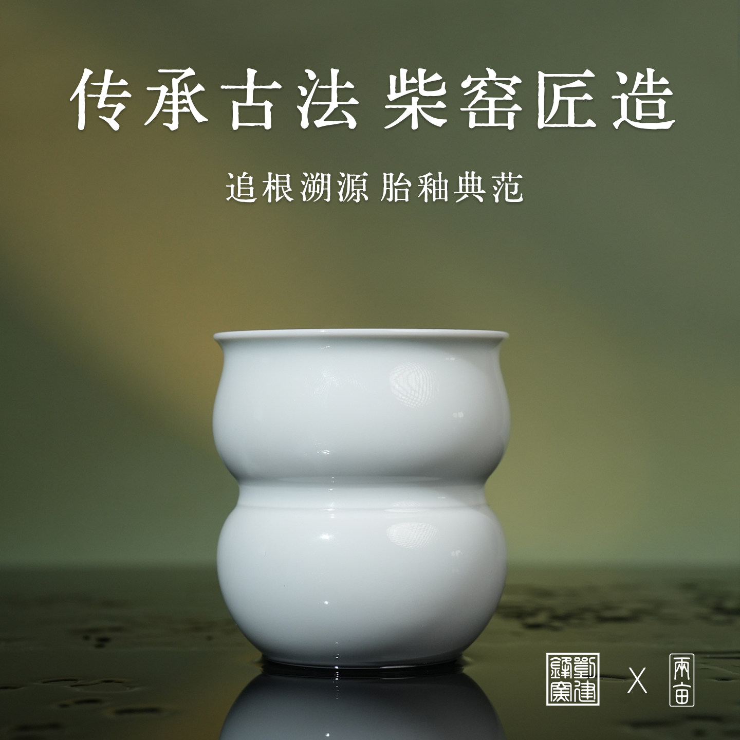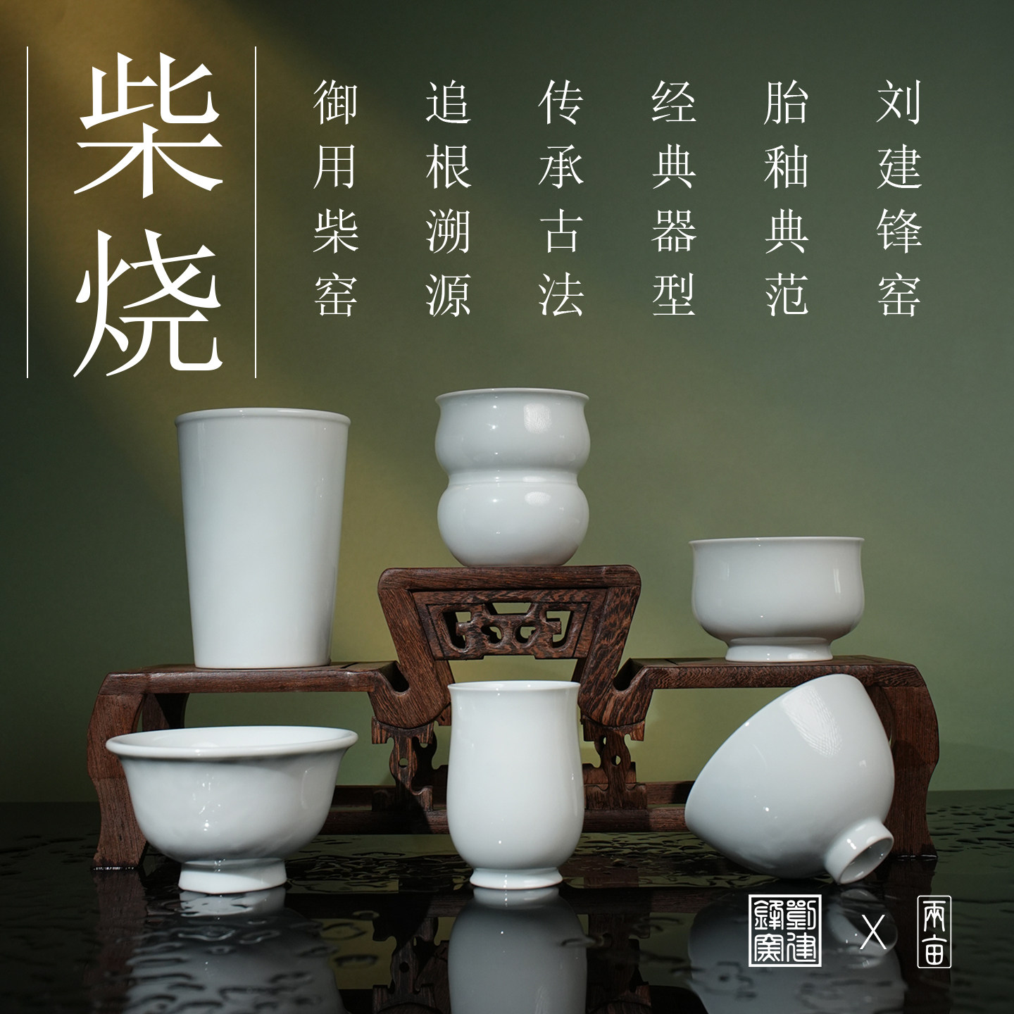 📚 刘建锋窑柴窑白胎甜白釉茶杯 景德镇釉下彩手绘青花全手工茶器