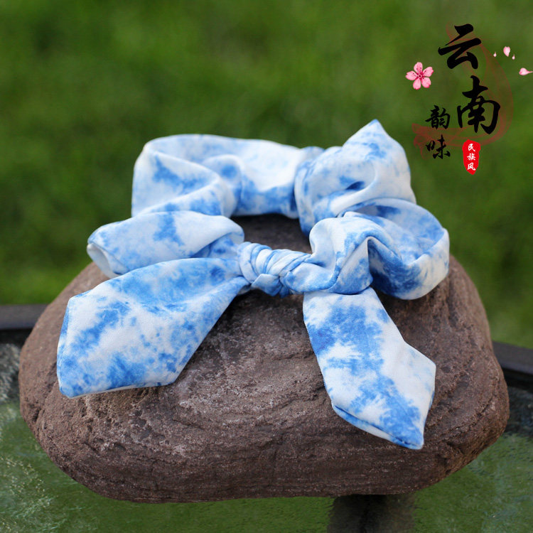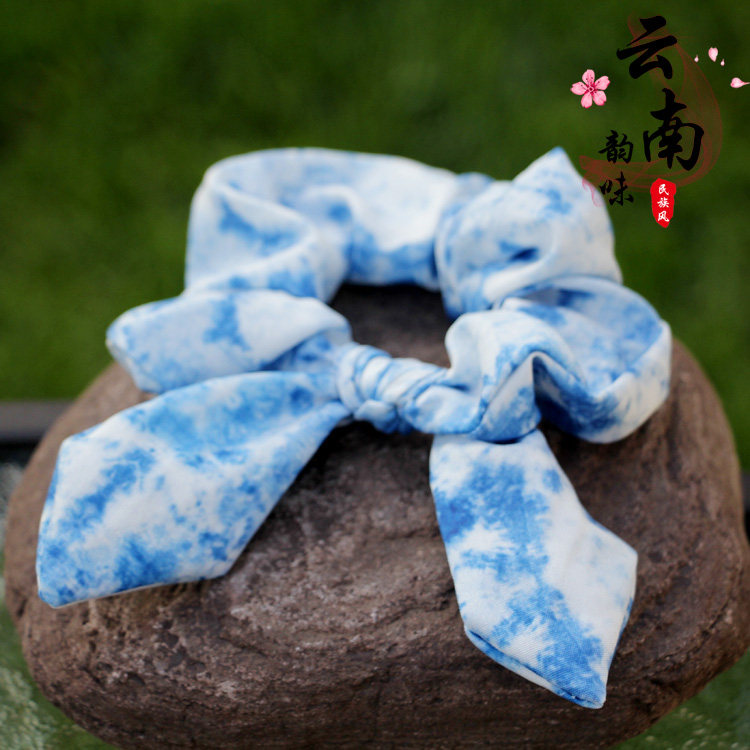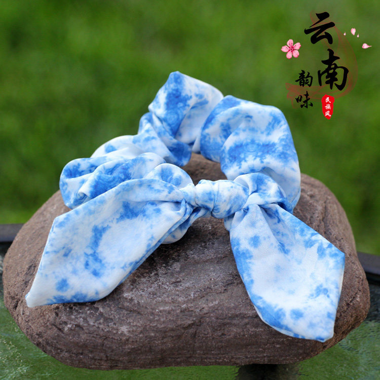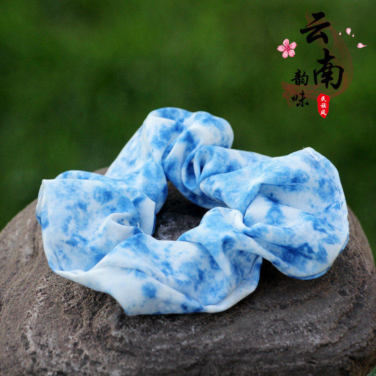 📚 云南大理丽江古城扎染蓝染布艺大肠花松紧头花头绳发绳儿童发饰