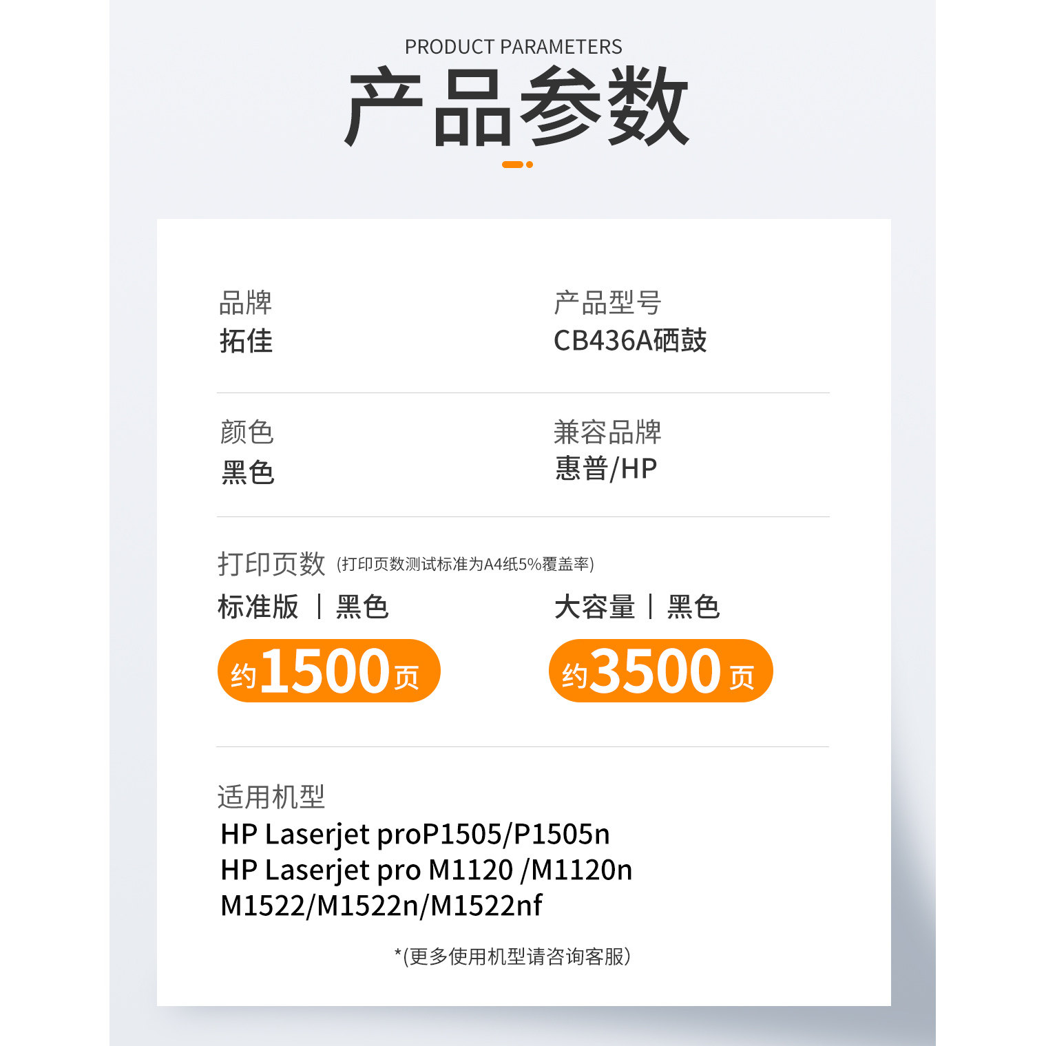 📚 适用惠普1505硒鼓M1522nf CB436A易加粉M1120n HP36A P1505n M1120mfp激光打印机佳能LBP3250 CRG313墨盒CMYK