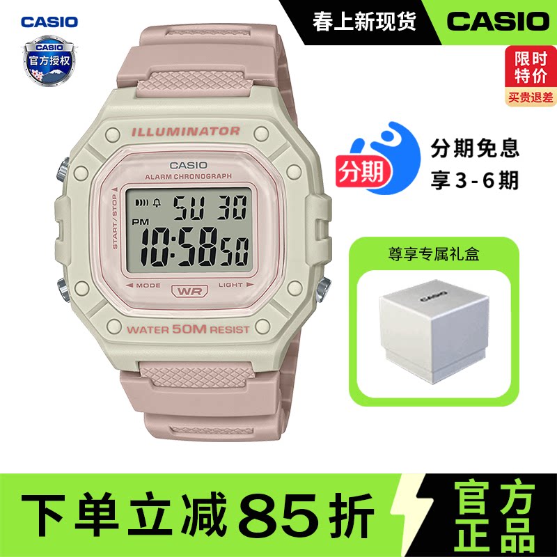 📚 卡西欧学生手表女款复古小方块儿童电子表运动防水男士W-218HC-4A