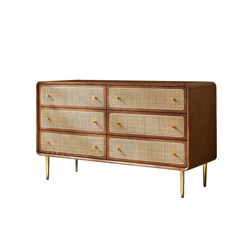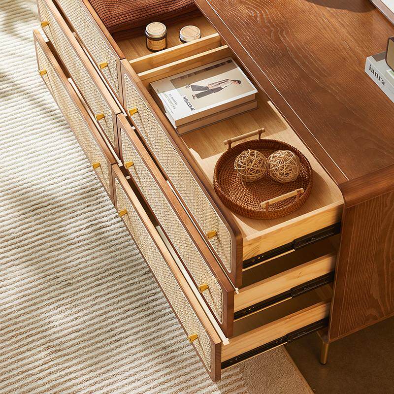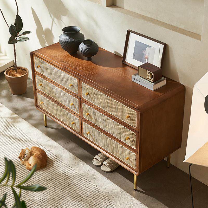 📚 北欧实木藤编四五六斗柜简约现代餐边抽屉收纳柜储物柜日式玄关柜