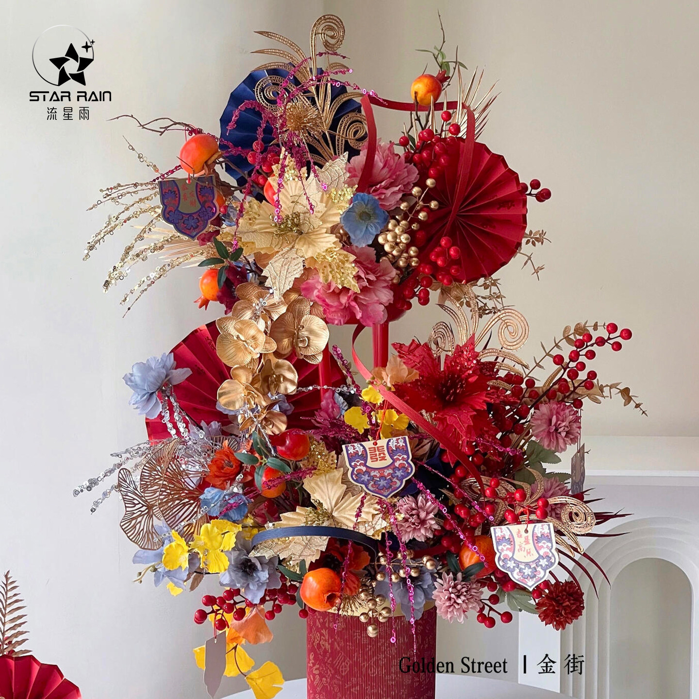 📚 新年装饰带年宵节春节福桶冬青花束飘带diy丝带彩带花艺插花材料
