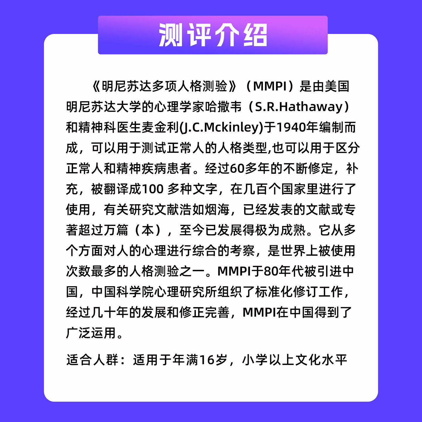 📚 心理云明尼苏达多相人格测验MMPI在线心理测评量表测试后自动出电子测评报告