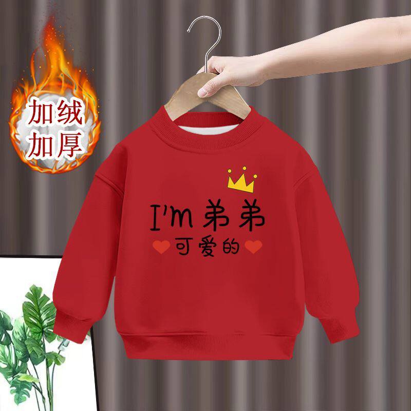 📚 中国风马年爆款姐弟装红色男女宝同款新年加绒卫衣冬季装拜年服