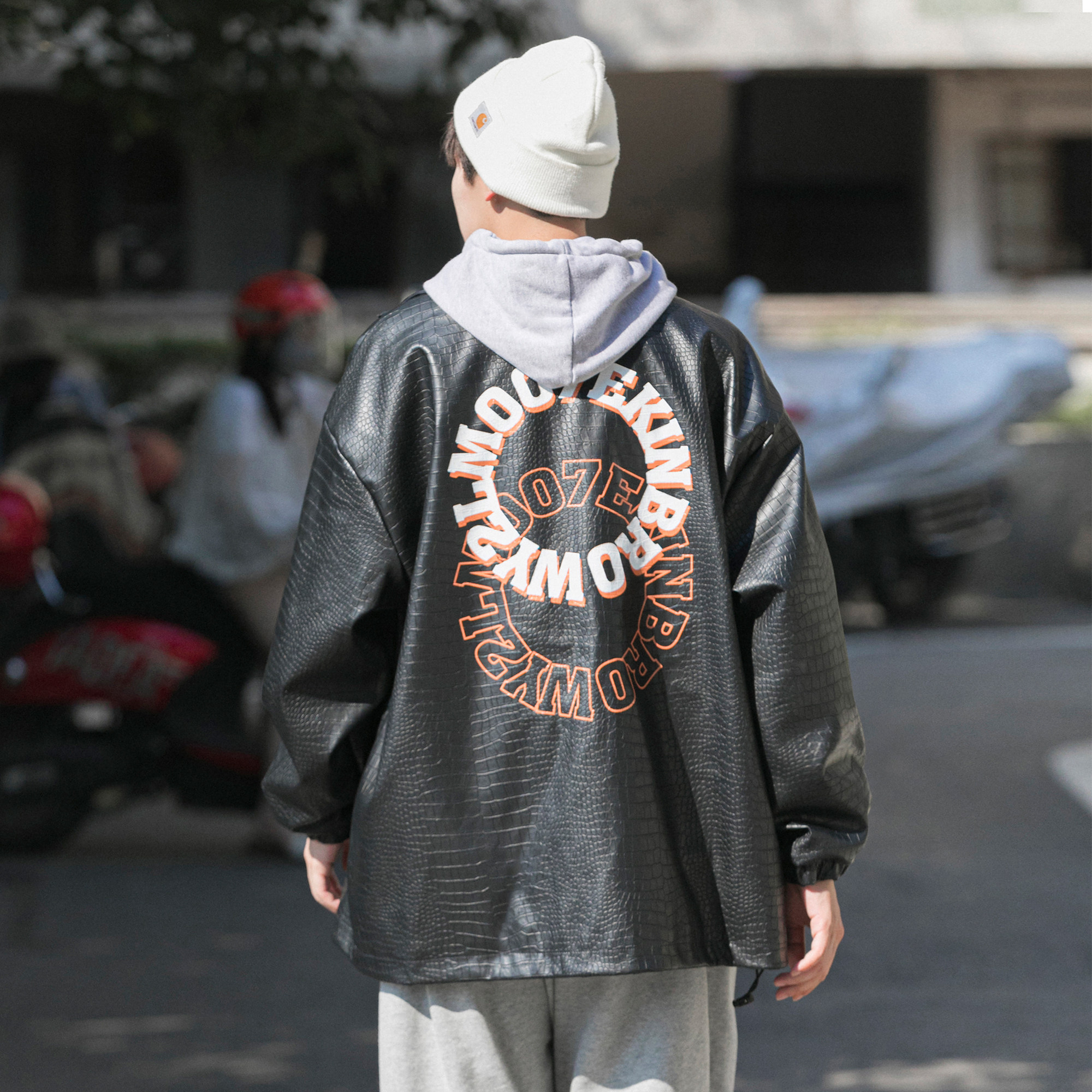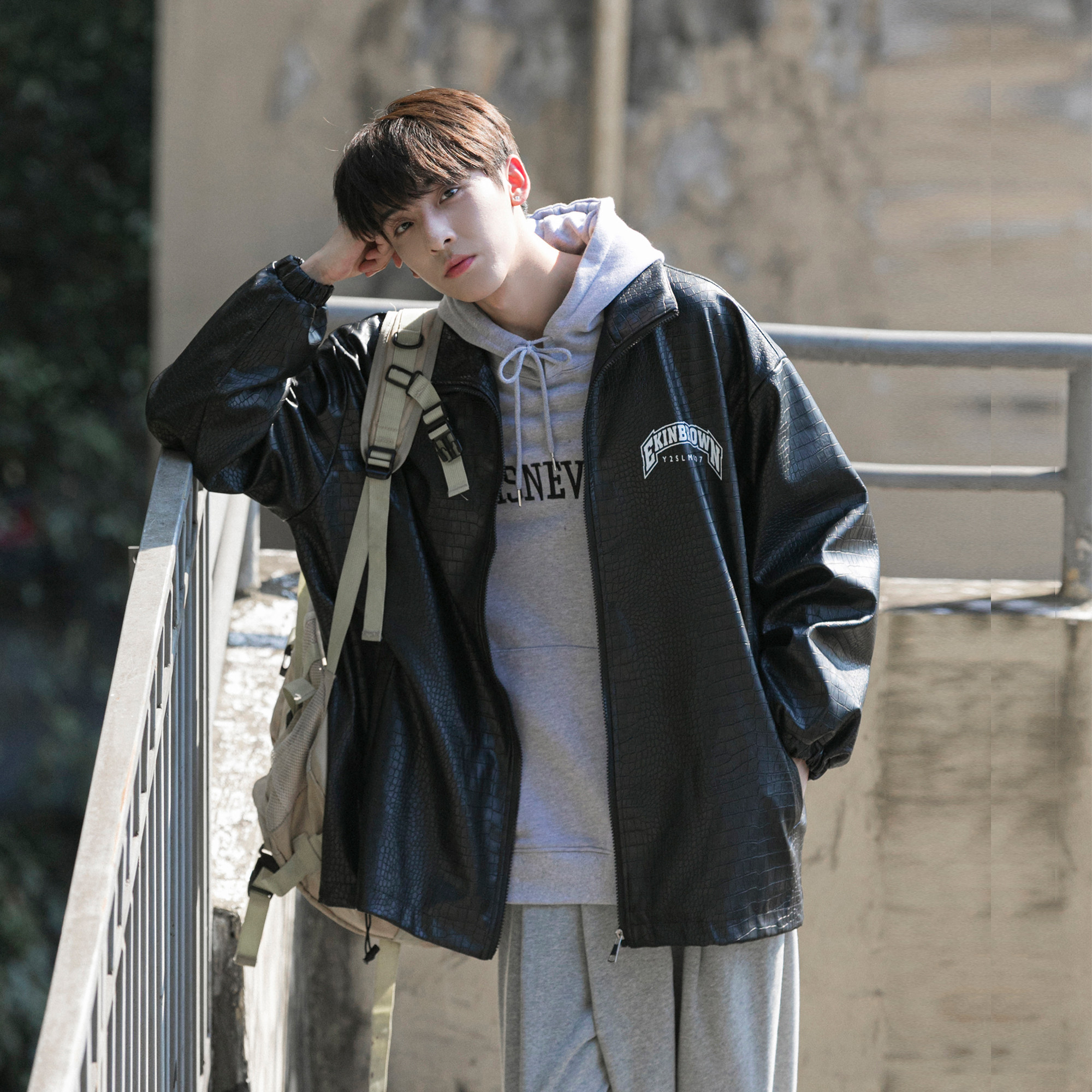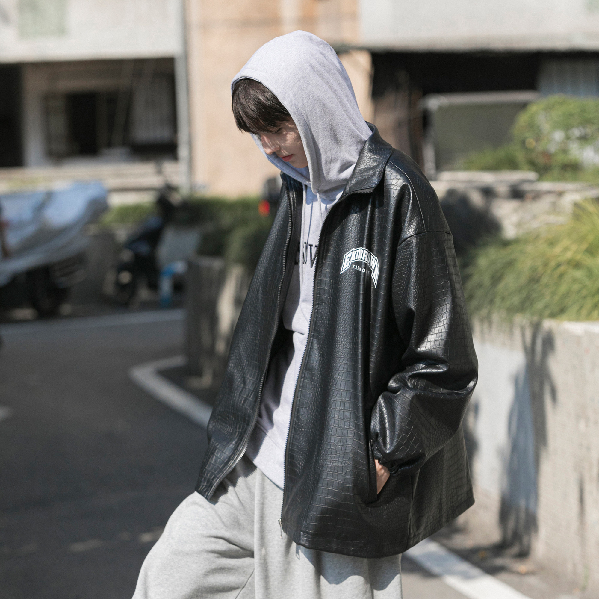 📚 二更港风鳄鱼纹皮衣夹克男春季2026新款美式字母印花潮牌男生外套