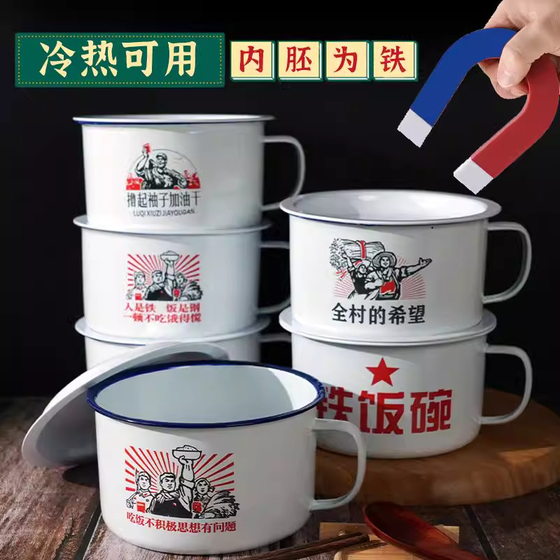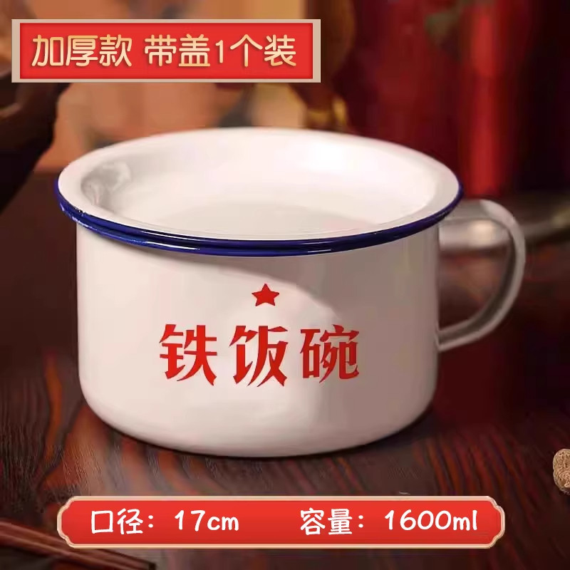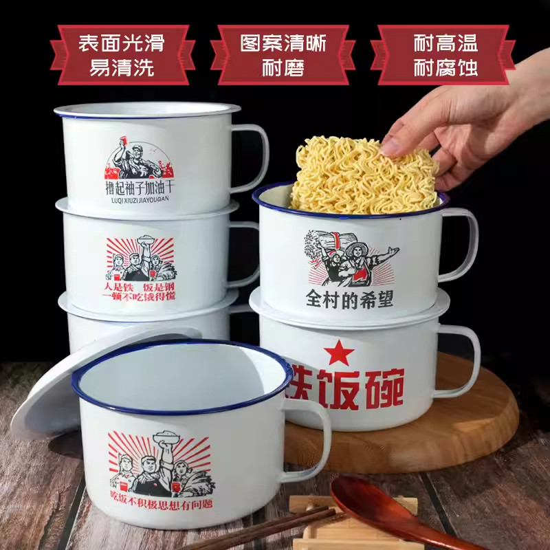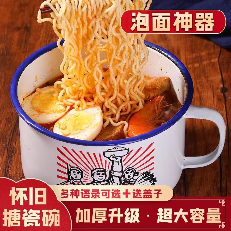 📚 老式搪瓷碗学生泡面碗超大容量家用带盖饭缸怀旧加热吃饭80年代