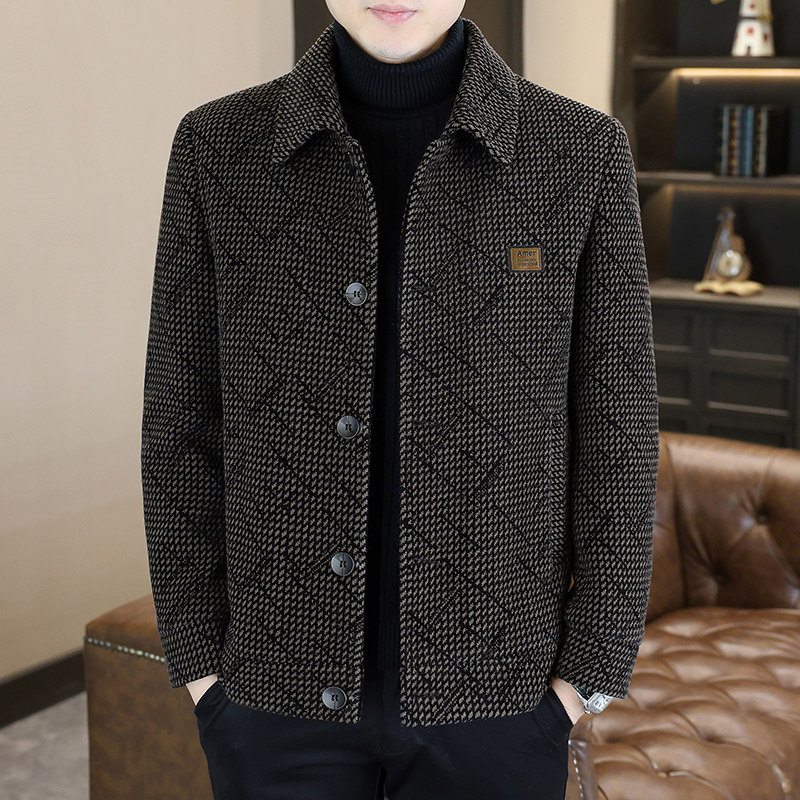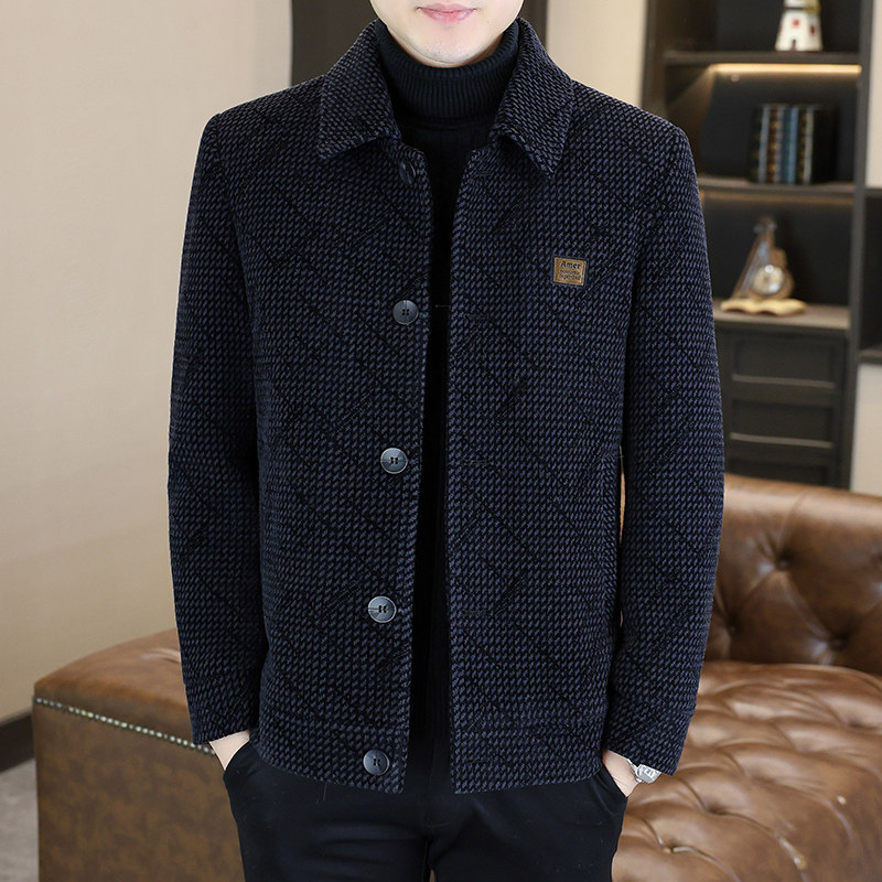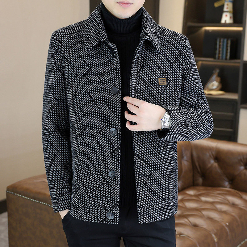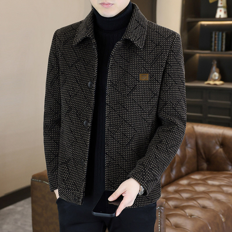 📚 冬季男士高档毛呢大衣翻领时尚短款加绒呢子外套潮流休闲夹克棉衣