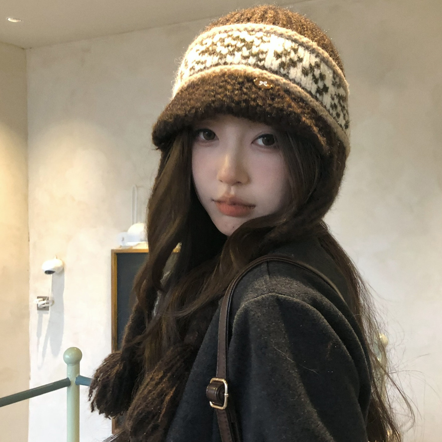 📚 【猫仔kitte】小众毛线帽秋冬保暖护耳帽麻花辫帽子针织帽套头帽