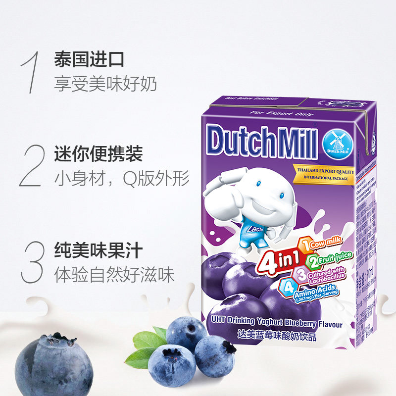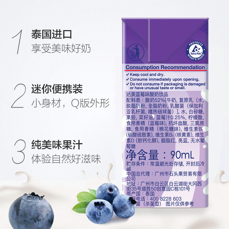 📚 泰国进口达美酸奶牛奶水果适合宝宝儿童蓝莓饮料酸奶饮品