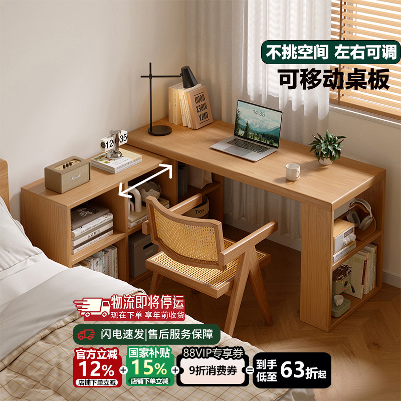 📚 实木转角书桌书架一体桌子家用学生写字桌卧室L型台式办公电脑桌