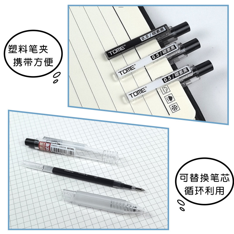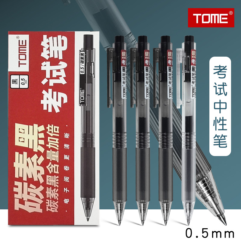 📚 TOME图米考试专用笔黑色0.5mm子弹头按动中性笔顺滑速干笔芯水性签字笔学生用刷题笔TM100