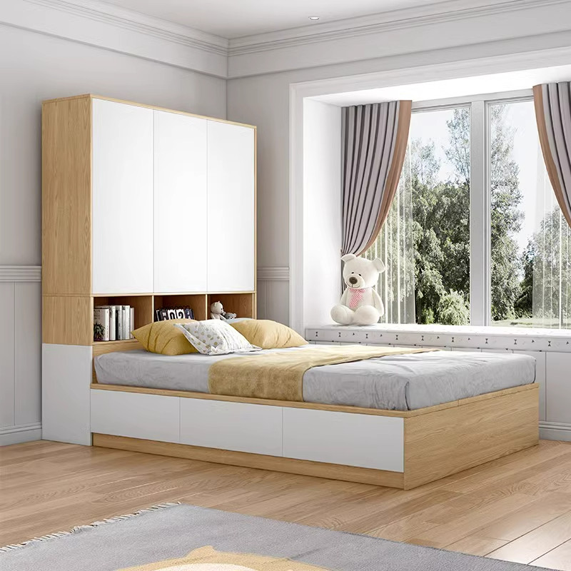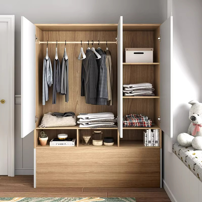 📚 多层板原木色配套立柜 简约现代家用小户型卧室平开门衣柜