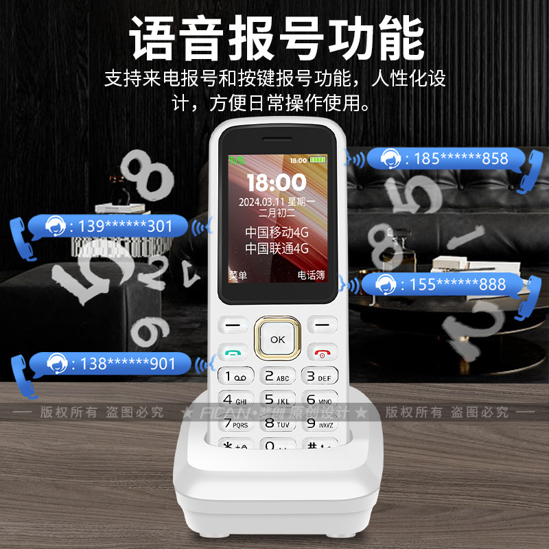 📚 无绳电话机无线插卡老人固话电话座机移动联通电信家用手持单机