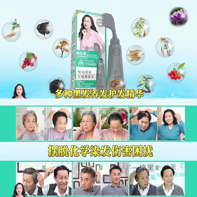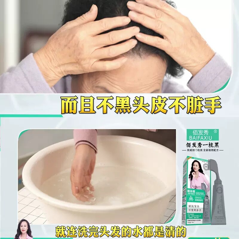 📚 百佰发秀一梳黑染发剂纯植物天然自己在家染发膏纯黑电视同款正品