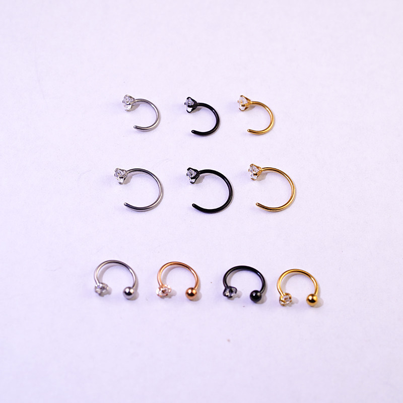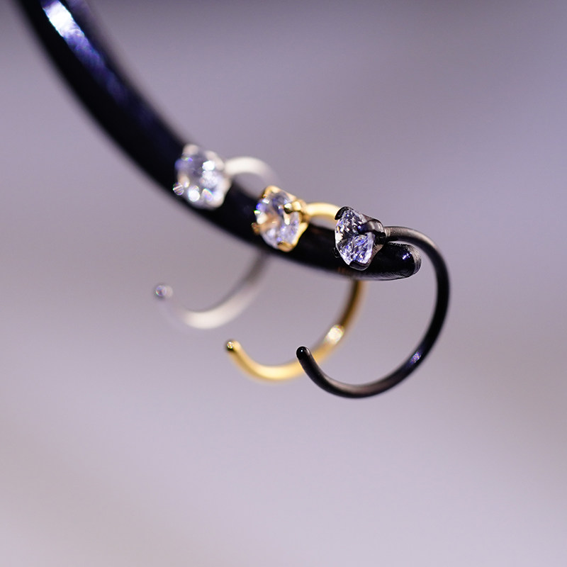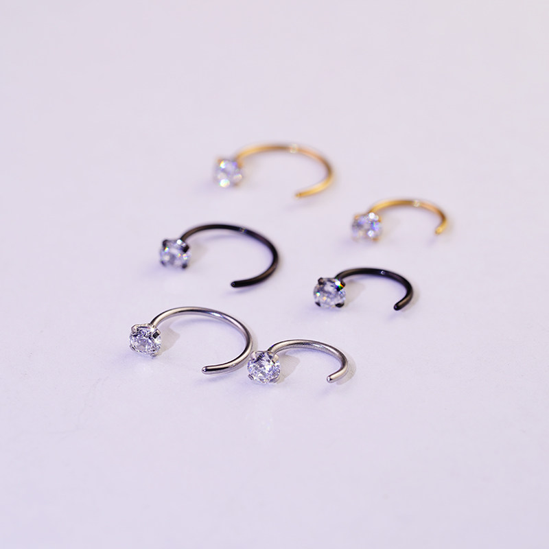 📚 0.8细针钛钢耳骨环锆石鼻环女潮流日韩爆闪小耳朵环百搭穿孔饰品