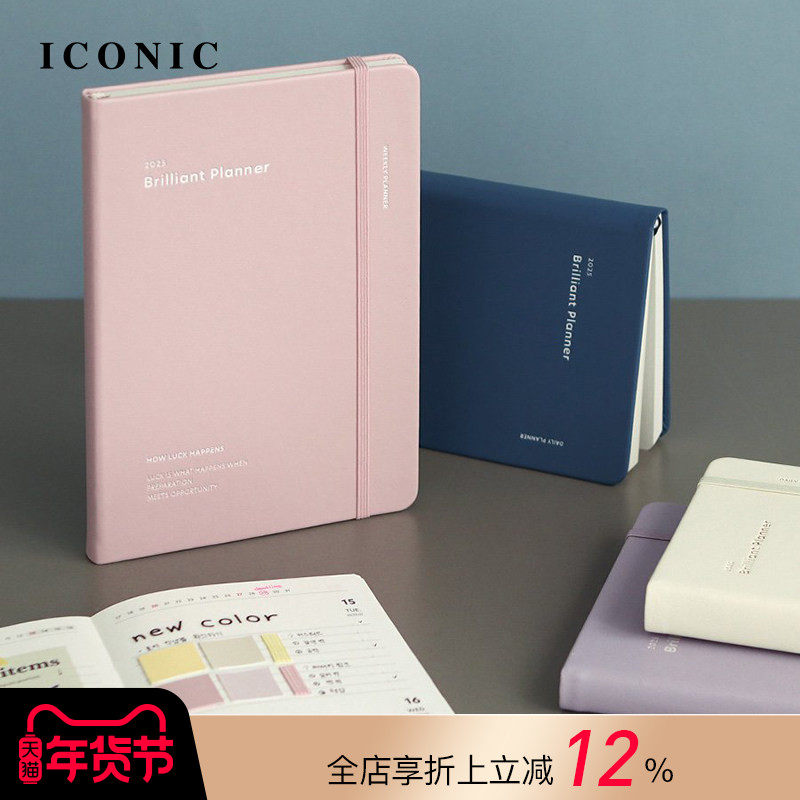 📚 【3折特惠】2025年韩国ICONIC Brilliant日记型B6变型手帐日程管理笔记本小清新纯色合成皮封皮横线内页