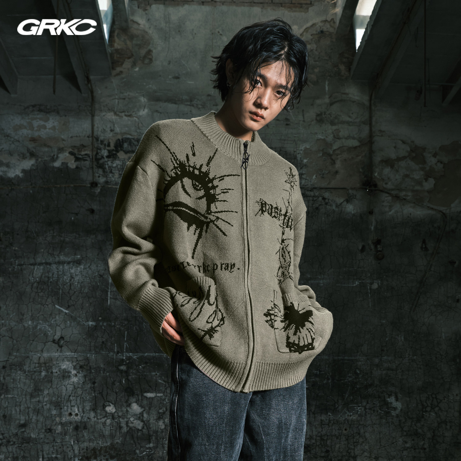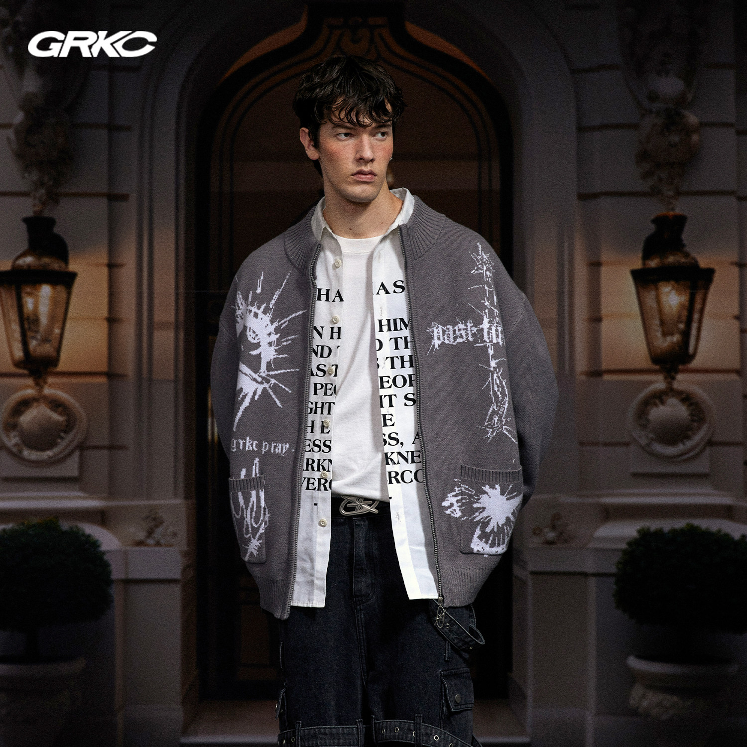 📚 GRKC吉尔卡克达芬奇手稿开衫毛衣外套男潮牌情侣针织衫秋冬毛线衣