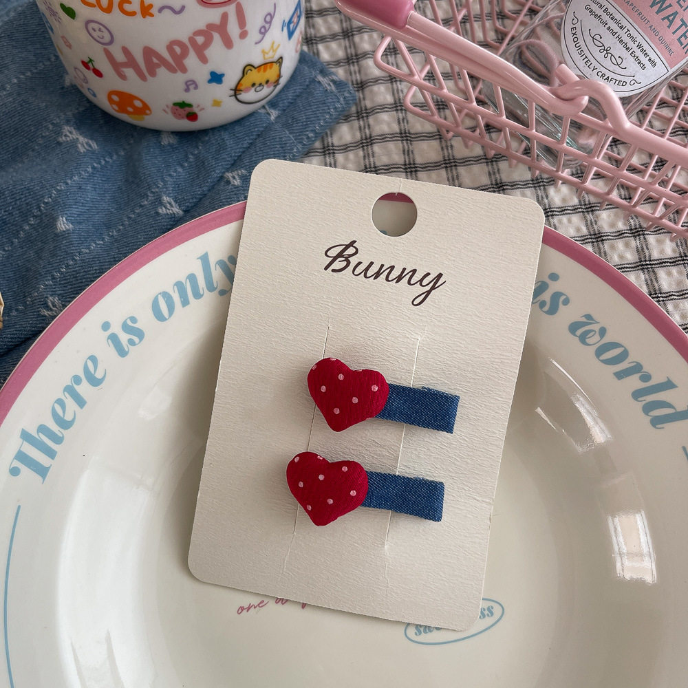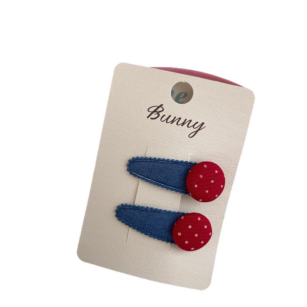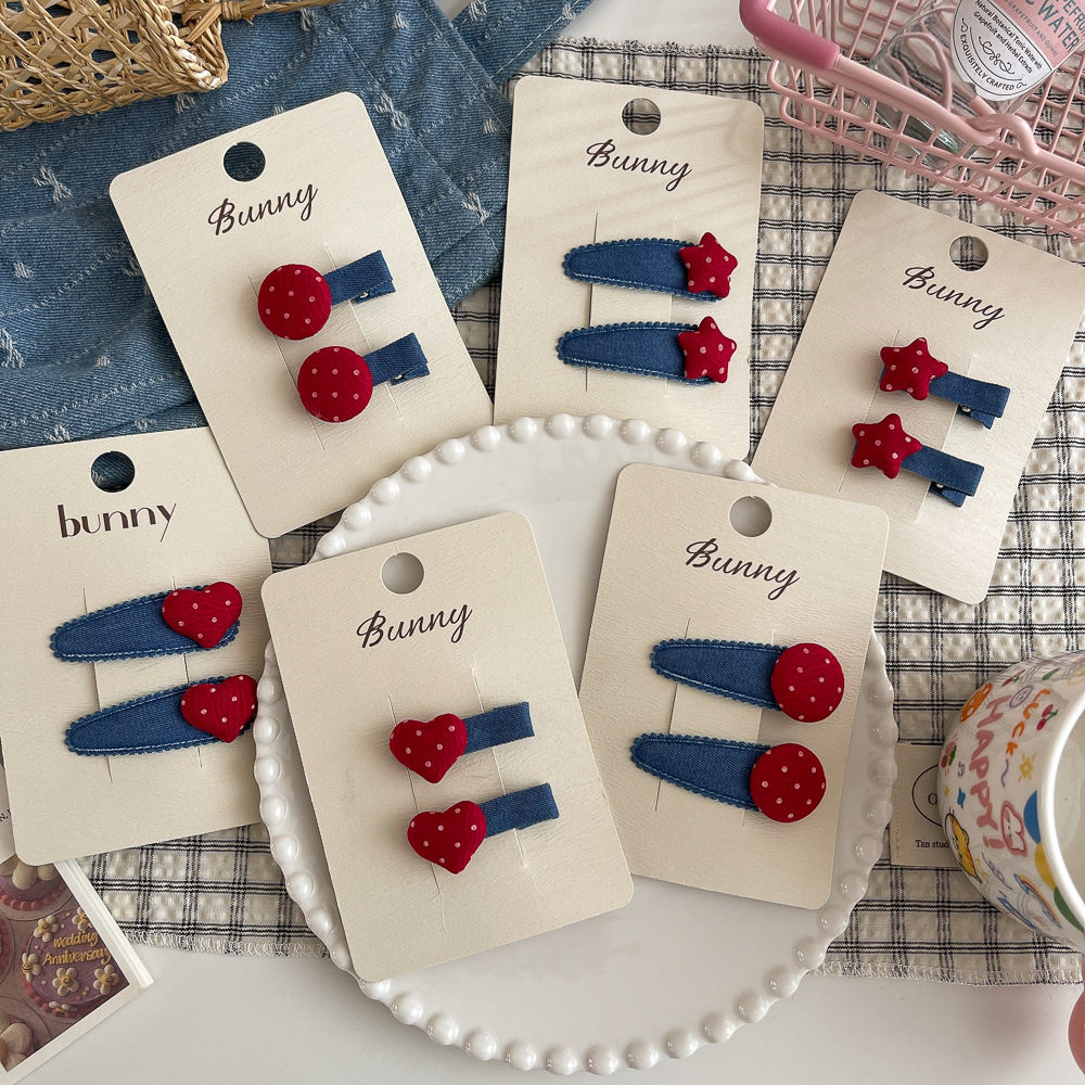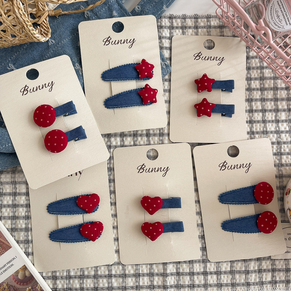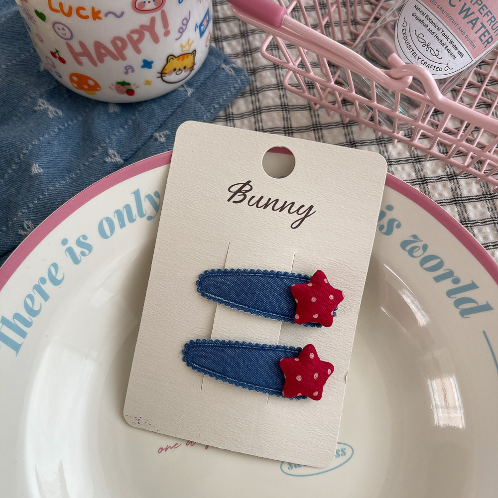 📚 韩版新款秋冬牛仔发夹波点星星儿童发饰布艺女孩发卡刘海侧边夹