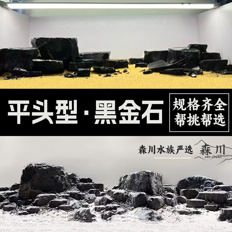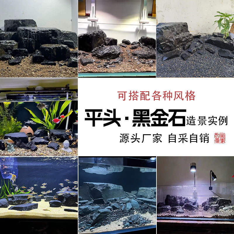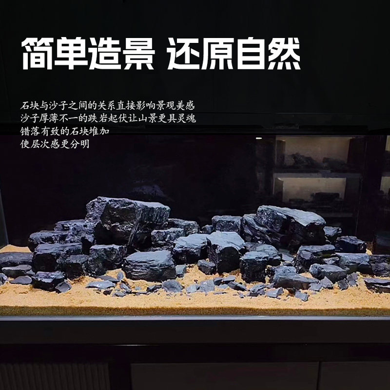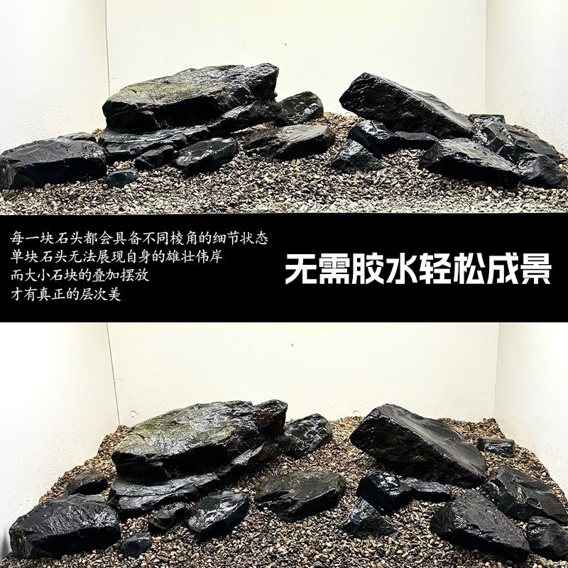 📚 黑金石鱼缸造景峡谷风平头风乌龟晒台平头石溪流缸溪流石水族箱