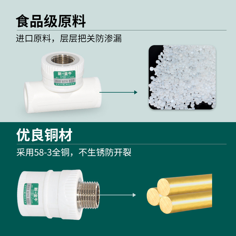 📚 新一金牛精品全铜PPR4分20全塑直接内丝三通外牙弯头热熔接头管件